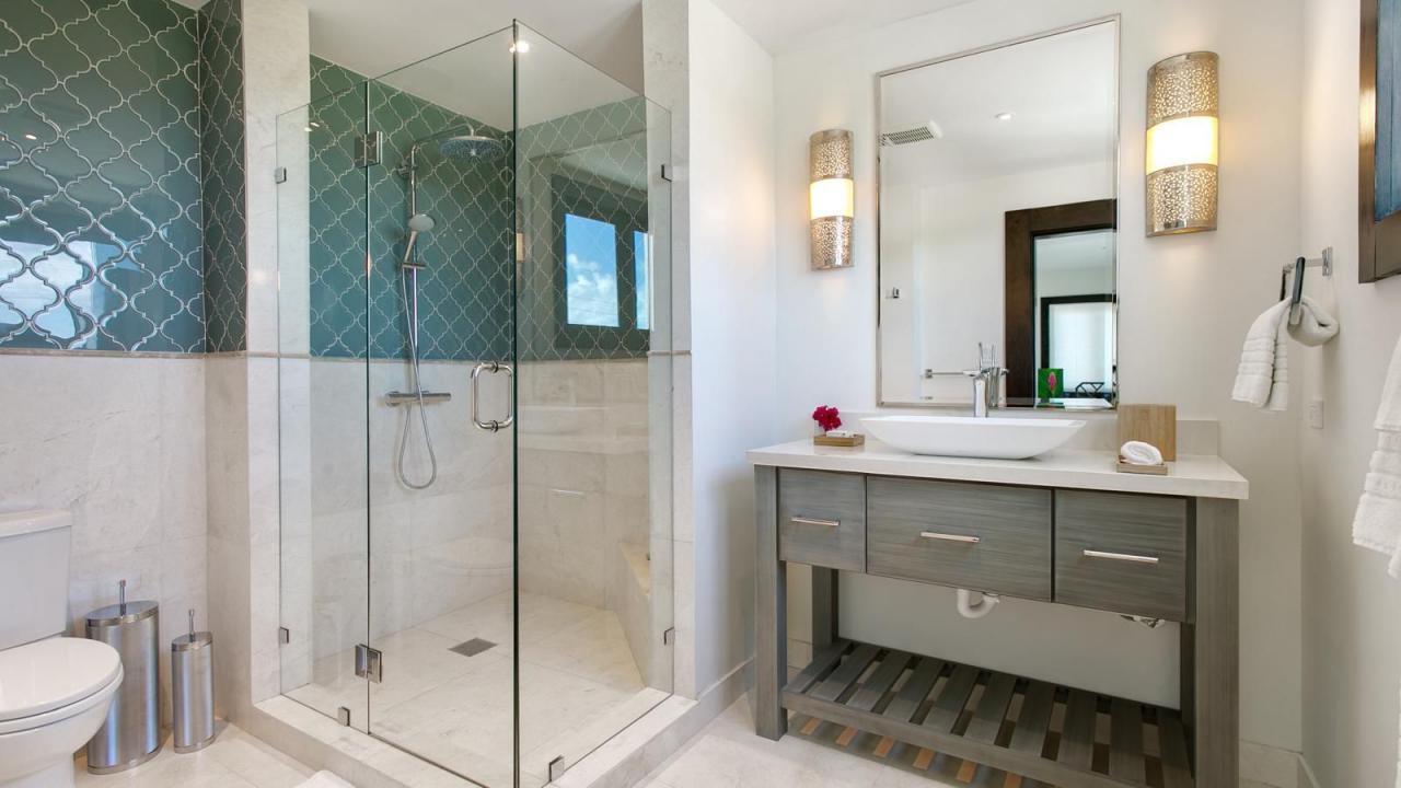 Agave boasts four spacious bedrooms, each offering spectacular views of the ocean and bay below. There is also a fifth flex room which can serve as a second living room, office, or bedroom. Three of the chic bedrooms feature luxurious king-sized beds, the fourth room has two queen-sized beds, and the fifth room has a queen-sized bed. Each room has an ensuite bathroom.