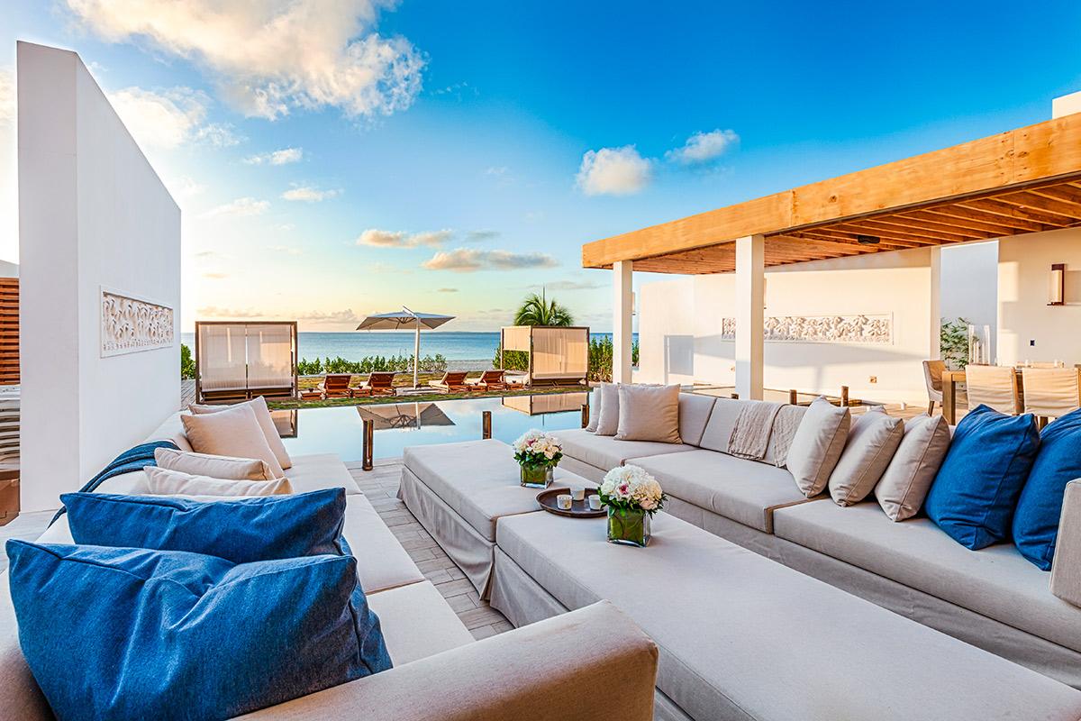 The theme flowing through Kishti Villa West is sea, the ever-present sea. Prodigious floor-to-ceiling windows create the sense of being on a liner in mid-ocean, infinity pools and hot tubs overlook the sea. Kishti Villa West has everything – five bedrooms, two kitchens, rooftop and patio gardens, home theater and home office. Above all, they have non-intrusive but supremely attentive service by an elaborate staff to ensure the full, pampering, no-effort-spared “Kishti Experience.” They raise the bar for style and sophistication in a Caribbean vacation.