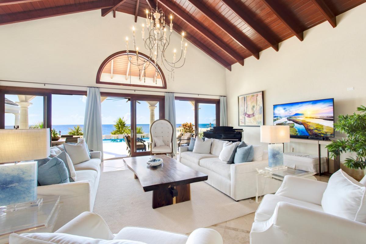 It boasts magnificent views of the Atlantic ocean with ever changing shades of blue. The first level of Sandcastle has two air conditioned bedrooms and children's playroom with magnificent sea views and ensuite bathrooms. There are large areas for entertaining outside around the infinity pool or at the gazebo with its BBQ, and a wonderful view of the beach and the sea beyond. One can also entertain more formally inside in the air conditioned great room with its adjoining dining area. There is a media room with a computer area just off the great room. The second level has a large grand master bedroom with ensuite bathroom with a bathtub and private outdoor shower, and a large balcony overlooking the beach and sea, along with an en suite fitness center. There is also a master bedroom on this level with ensuite bathroom and shower and a large balcony overlooking the sea.