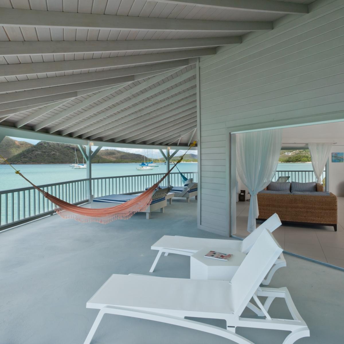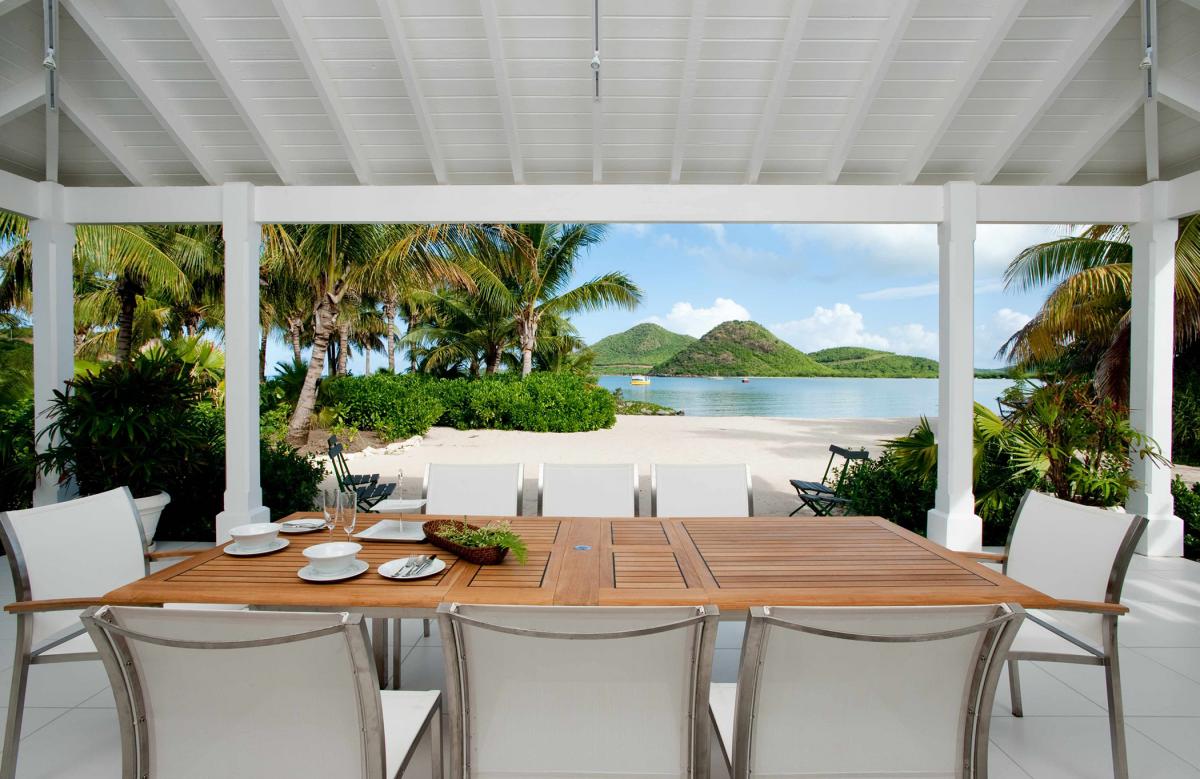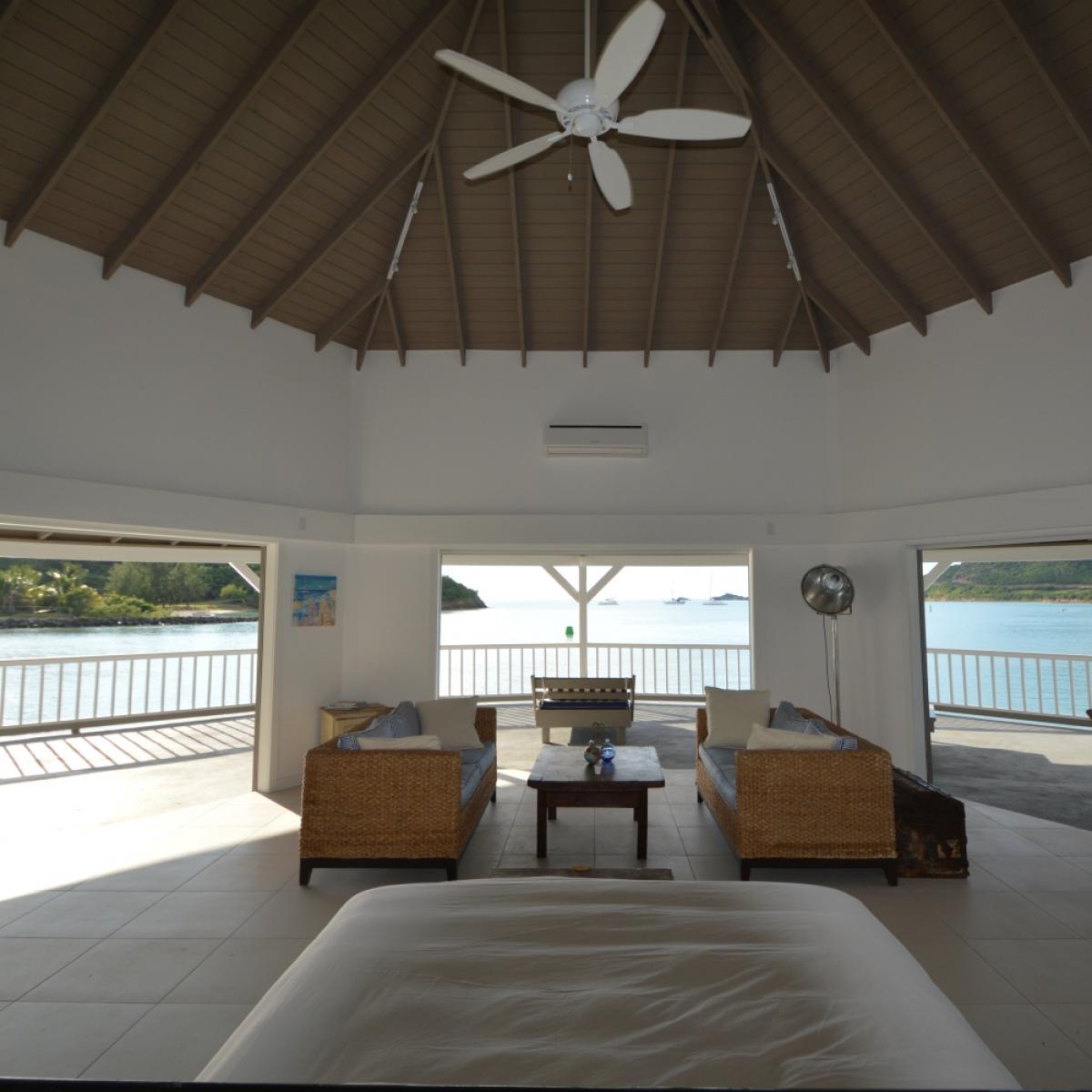 The infinity pool and Jacuzzi are set into stone paving and benefit from sizeable covered terraces around the villa, while the surrounding tropical gardens have been especially landscaped to give shaded areas of peace and tranquillity away from the house. Guests can choose to dine, either by the pool watching the boats come in to the harbour, or entertain on the private beach.