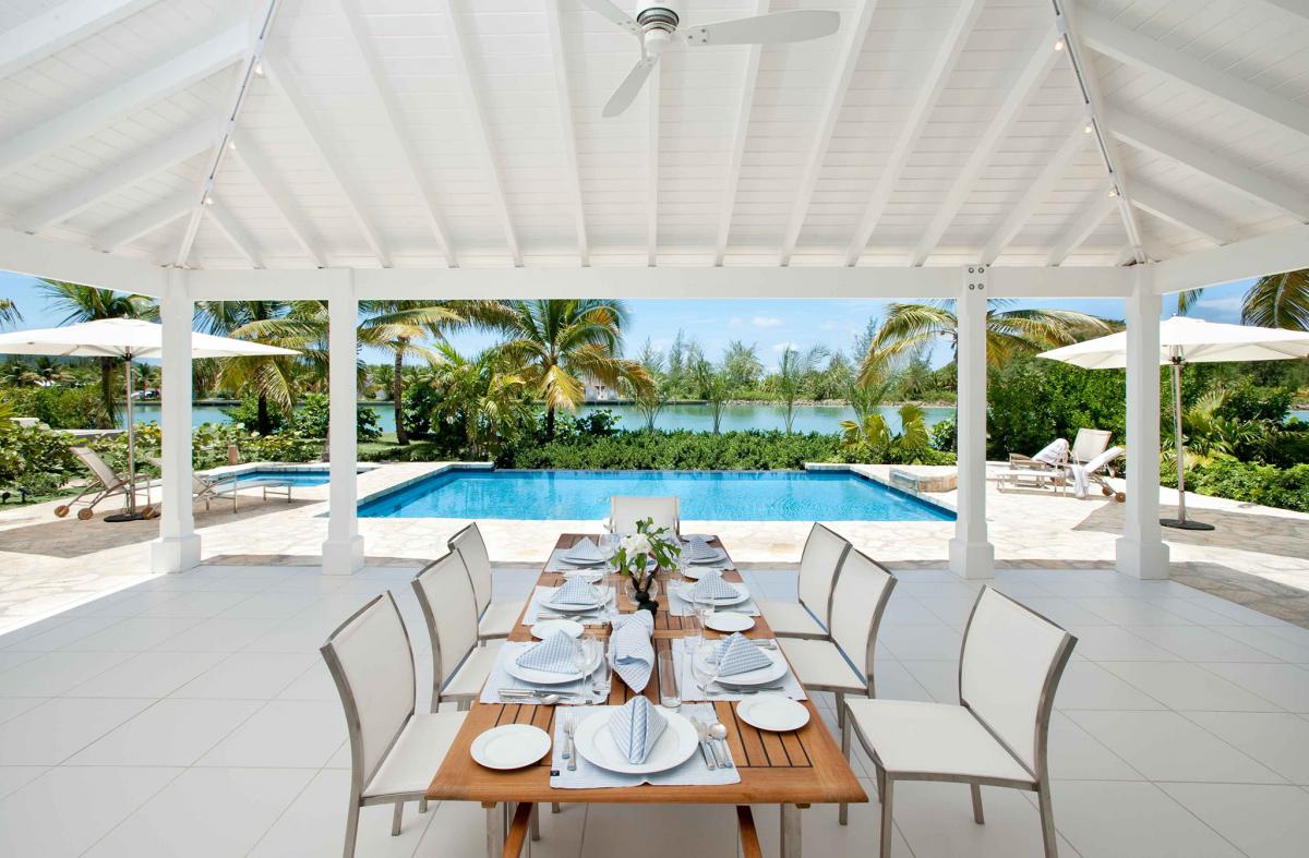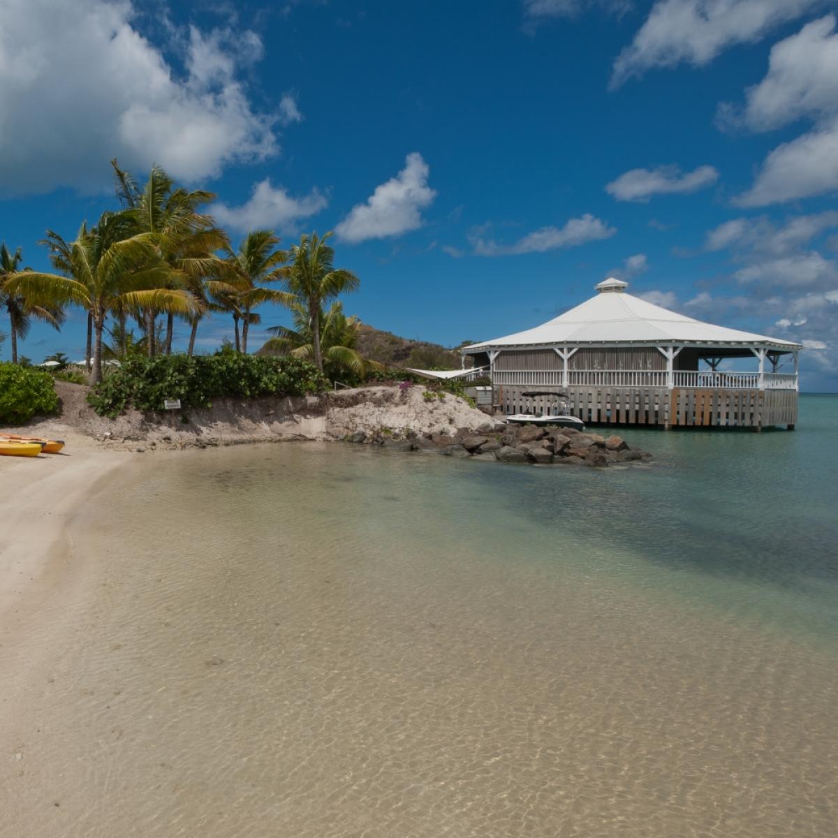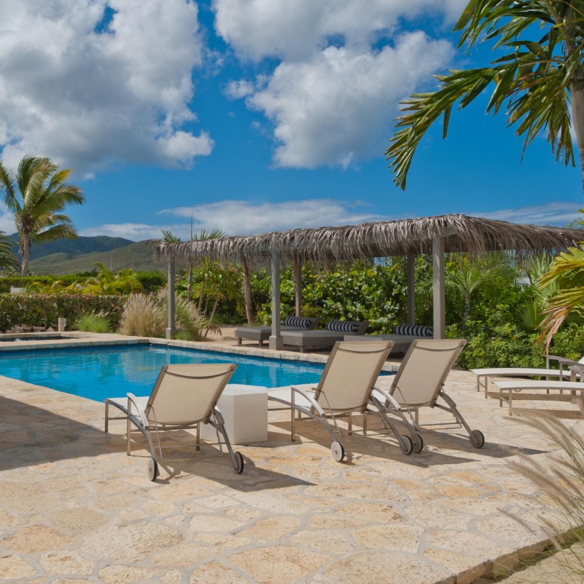 The infinity pool and Jacuzzi are set into stone paving and benefit from sizeable covered terraces around the villa, while the surrounding tropical gardens have been especially landscaped to give shaded areas of peace and tranquillity away from the house. Guests can choose to dine, either by the pool watching the boats come in to the harbour, or entertain on the private beach.