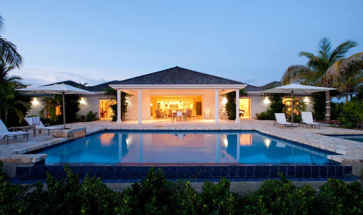 The spacious 12,000 square-foot villa features dramatic vaulted ceilings over the central lobby and open-plan lounges leading directly out to the pool, the white sand beach and the ocean beyond. Six superb en-suite bedrooms surround the living areas, with an additional seventh Gazebo bedroom located over the ocean commanding stunning 360 degree views. Each individual suite is decorated in cool contemporary design and all are only steps away from the beach and the ocean.