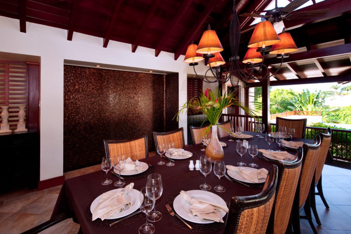The master suite, which encompasses the whole upper level, is pure indulgence with an ornately decorated double bathroom containing a lavish walk in shower that leads out onto the private patio containing an amazing outdoor tub. The private patio overlooks the pool area and gazebo and offers one of the best views from the property, with a gully (one of Barbados' stunning features) running along the north side and the coast to the west.