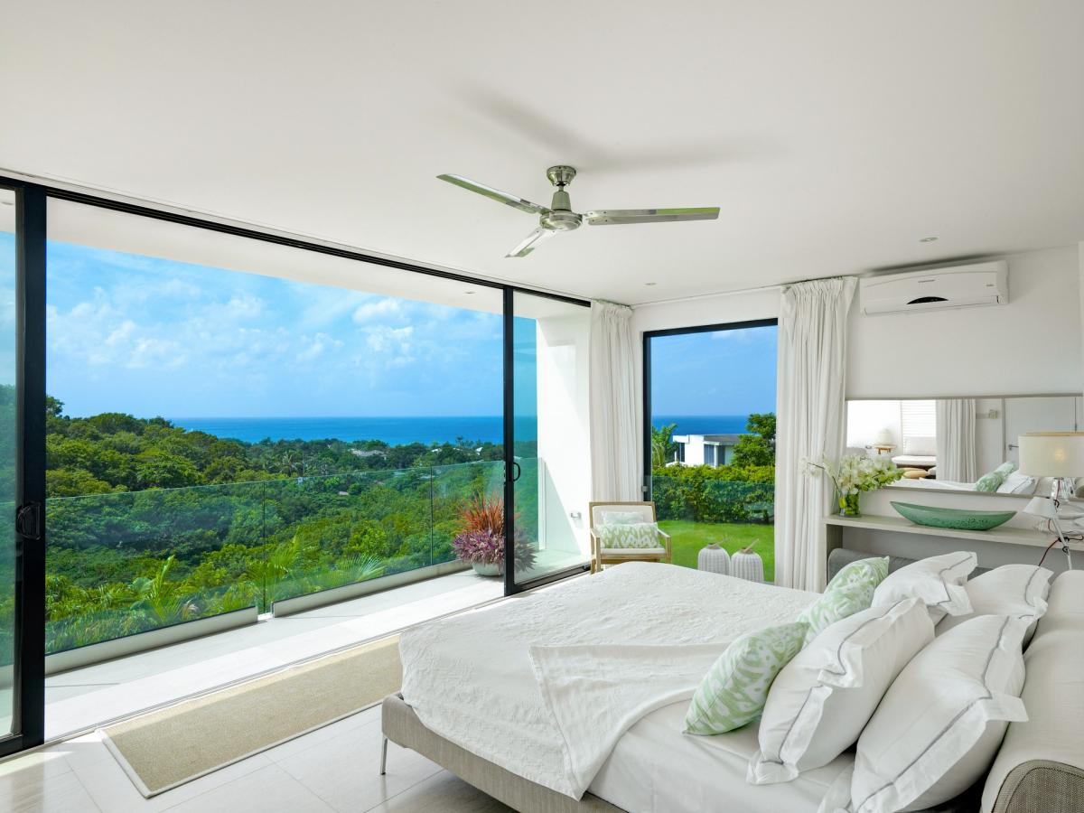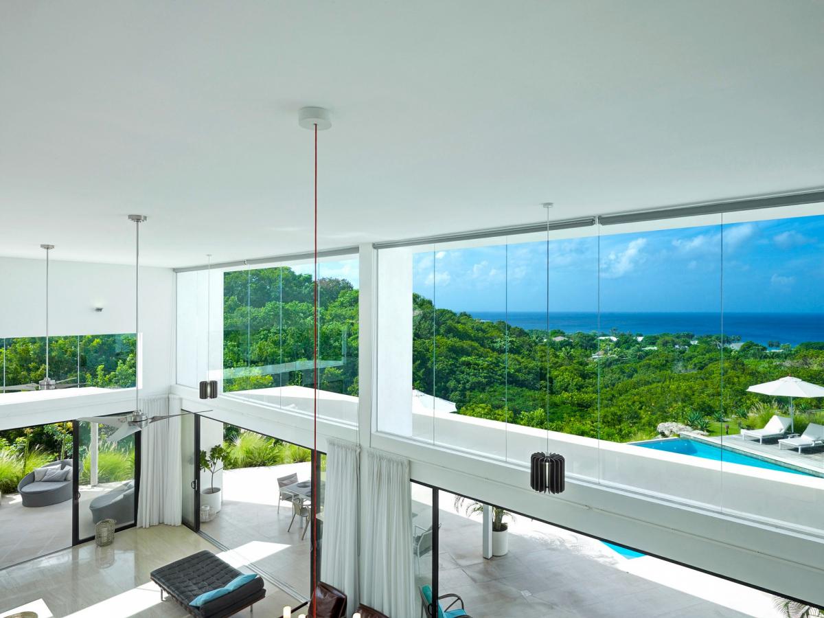 Atelier House, a contemporary 4 bedroom ridge-front villa with dramatic Caribbean Sea views. The modern living space was designed to maximize the breathtaking views with double-height living area and floor to ceiling glass windows and doors. The villa also has mezzanine-level study, large roof terrace and 4 spacious bedrooms. The master benefits from en-suite bathroom, glazed balcony and private covered terrace. The grounds include, wide terraces, infinity pool and half an acre of gardens featuring indigenous palms, lilies, bougainvillea and many flowering shrubs.