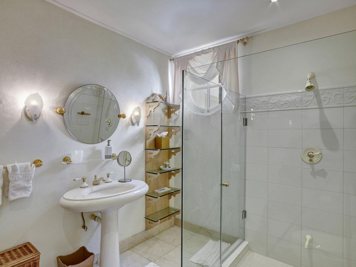 Bedroom 4: This room is equipped with two twin-sized beds, AC, a TV, a view of the garden, and an ensuite bathroom with a shower.