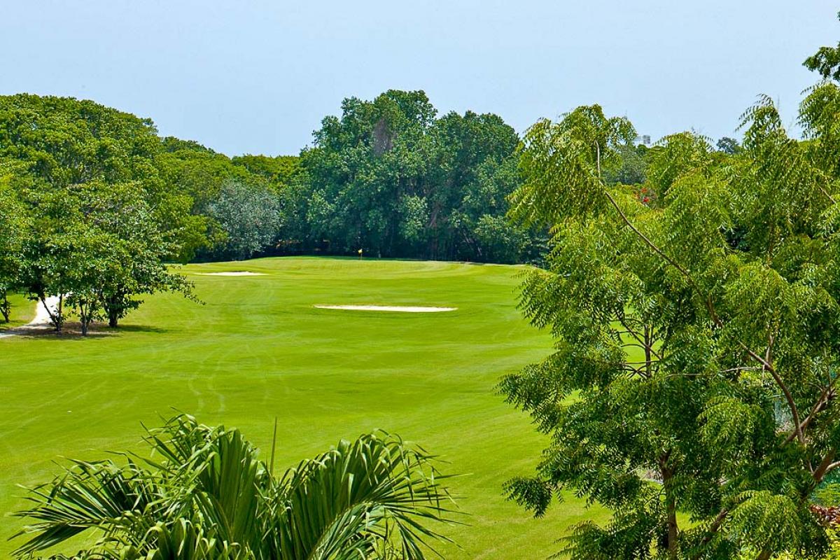 Bedroom 3: This room is equipped with a queen-sized bed, a golf view, AC, a safe, a shared terrace, and an ensuite bathroom with a walk-in shower.