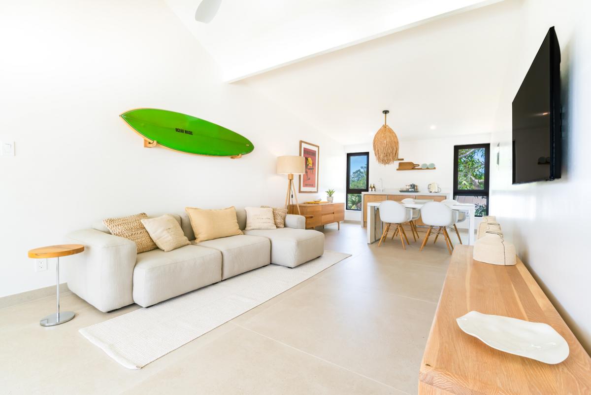 Flowing effortlessly from the outdoor oasis, the villa’s open-plan living area and modern kitchen blend sophistication with natural beauty. The kitchen is designed for both function and social connection, featuring a breakfast bar and a spacious dining area perfect for shared meals and gatherings. Meanwhile, the guest cottage serves as a private sanctuary, complete with its own living area and compact kitchen, offering added independence and comfort for visitors. Every element of Cloudbreak Villa has been carefully curated to deliver a seamless balance of tranquility, elegance, and modern convenience. With its serene setting, luxurious amenities, and breathtaking surroundings, Cloudbreak provides an exceptional escape where guests can relax, recharge, and create lasting memories in a truly idyllic environment.