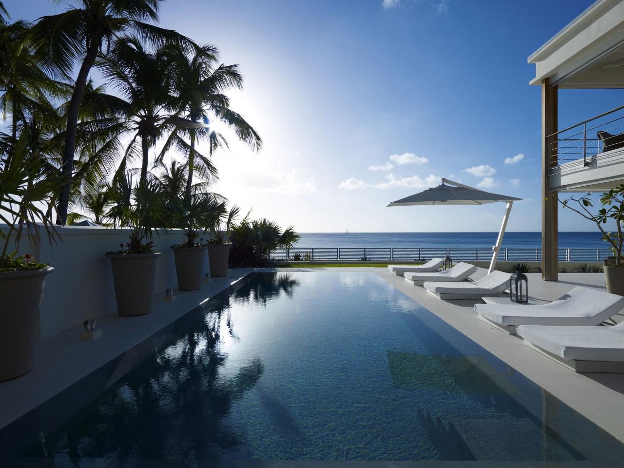 Fully upgraded, the contemporary, open-plan villa is beautifully appointed with high-end furnishings and finishes carefully selected from across the globe. There are five luxurious en suite bedrooms featuring air conditioning, security safes, flat screen televisions, DVD players, iPod docking stations. The magnificent master bedroom suite, located on the upper level overlooks the enticing turquoise waters of the Caribbean Sea. The ample living space with bar extends out onto the covered terraces and sundeck surrounded by beautifully landscaped grounds and manicured lawns, tropical flowers and swaying palm trees.