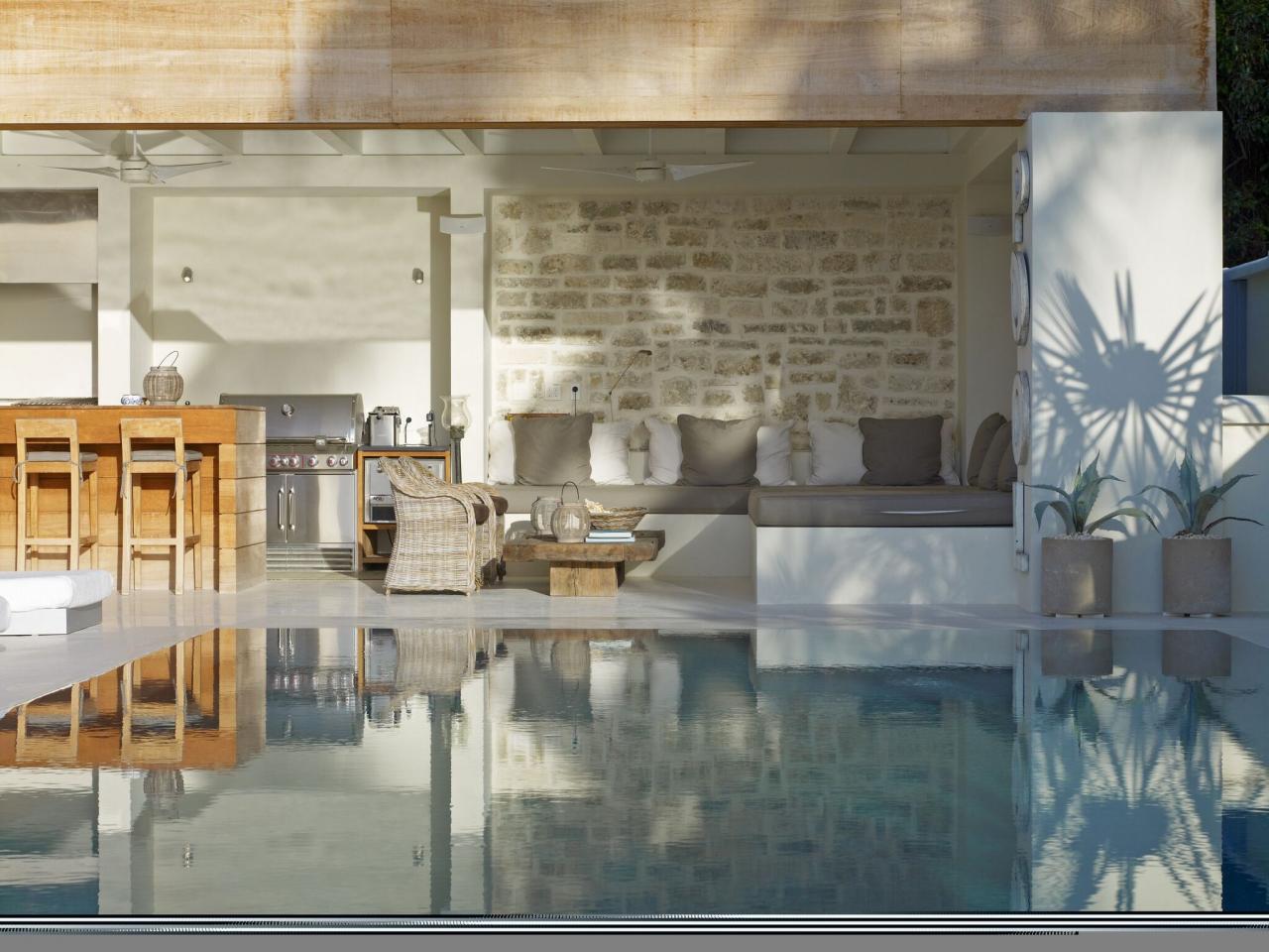 The villa features a stylish 45 ft infinity edge swimming pool and sunbathing terrace with oversized sun loungers and umbrellas. The outdoor seating area, complete with pizza oven, BBQ, bar and lounge area, provides guests with ample space to enjoy outdoor living at its very finest, both day and night, with glamorous lighting illuminating the terraces once evening sets.