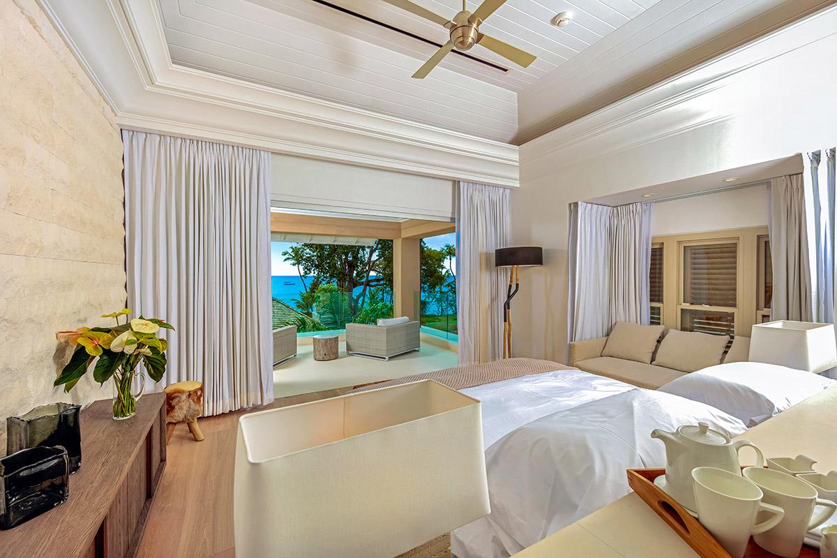 All five bedrooms have king-size beds and ocean views. Two bedrooms can separate into two twin-size beds each.