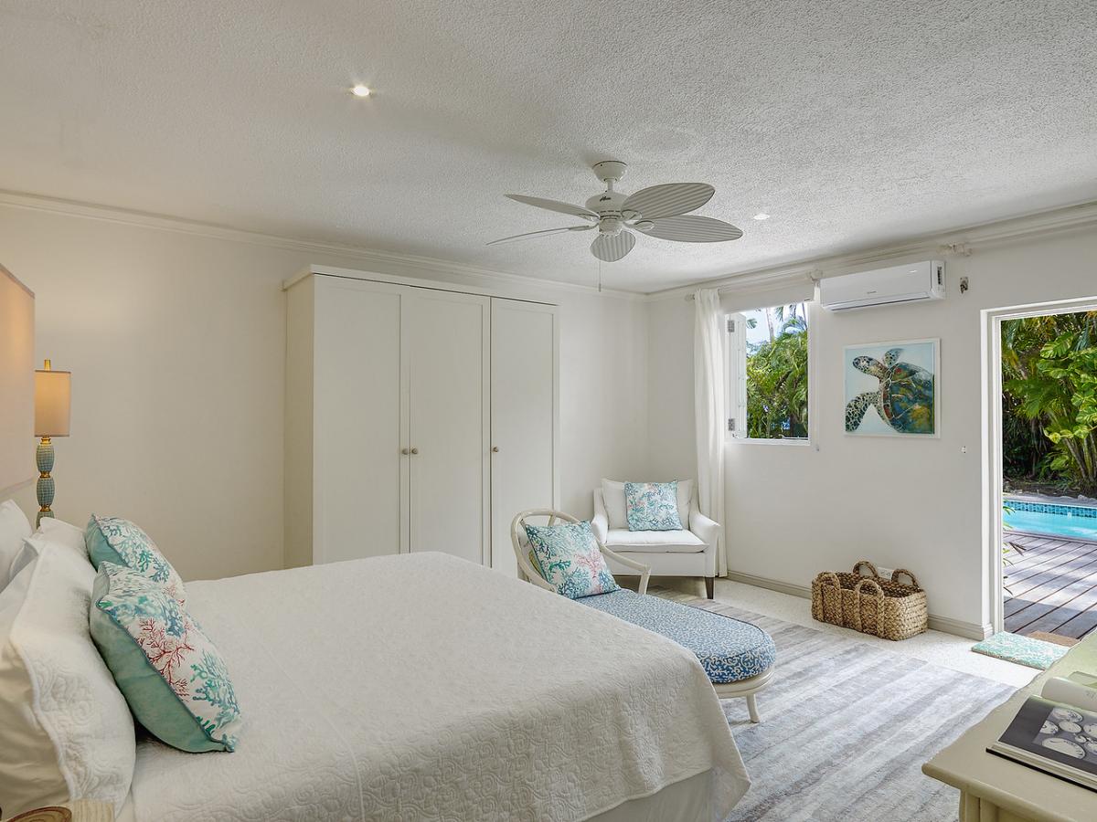 All four bedrooms of this Barbados rental are air-conditioned with en-suite bathrooms. The main bedroom features a "wet room" and direct pool deck access, while Bedrooms 2 and 3 also have pool access and are connected via a shared bathroom, making them ideal for families. Bedroom 4 is located near the entry foyer.
