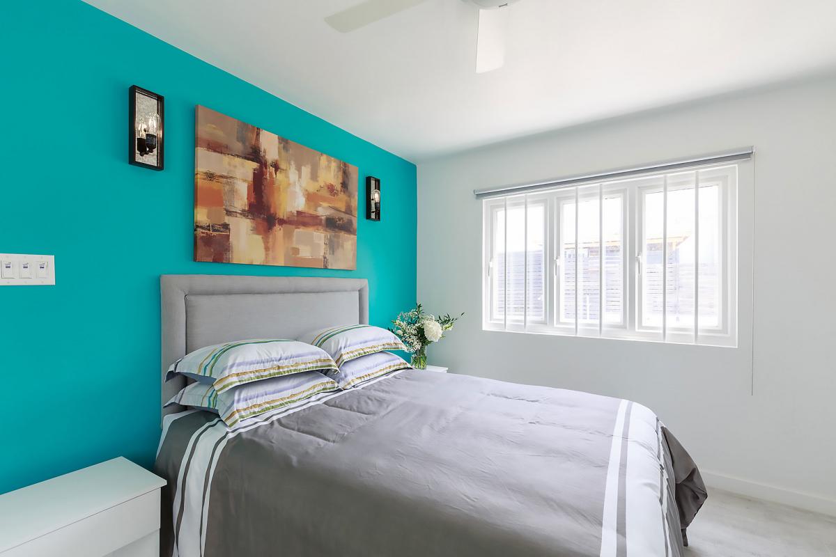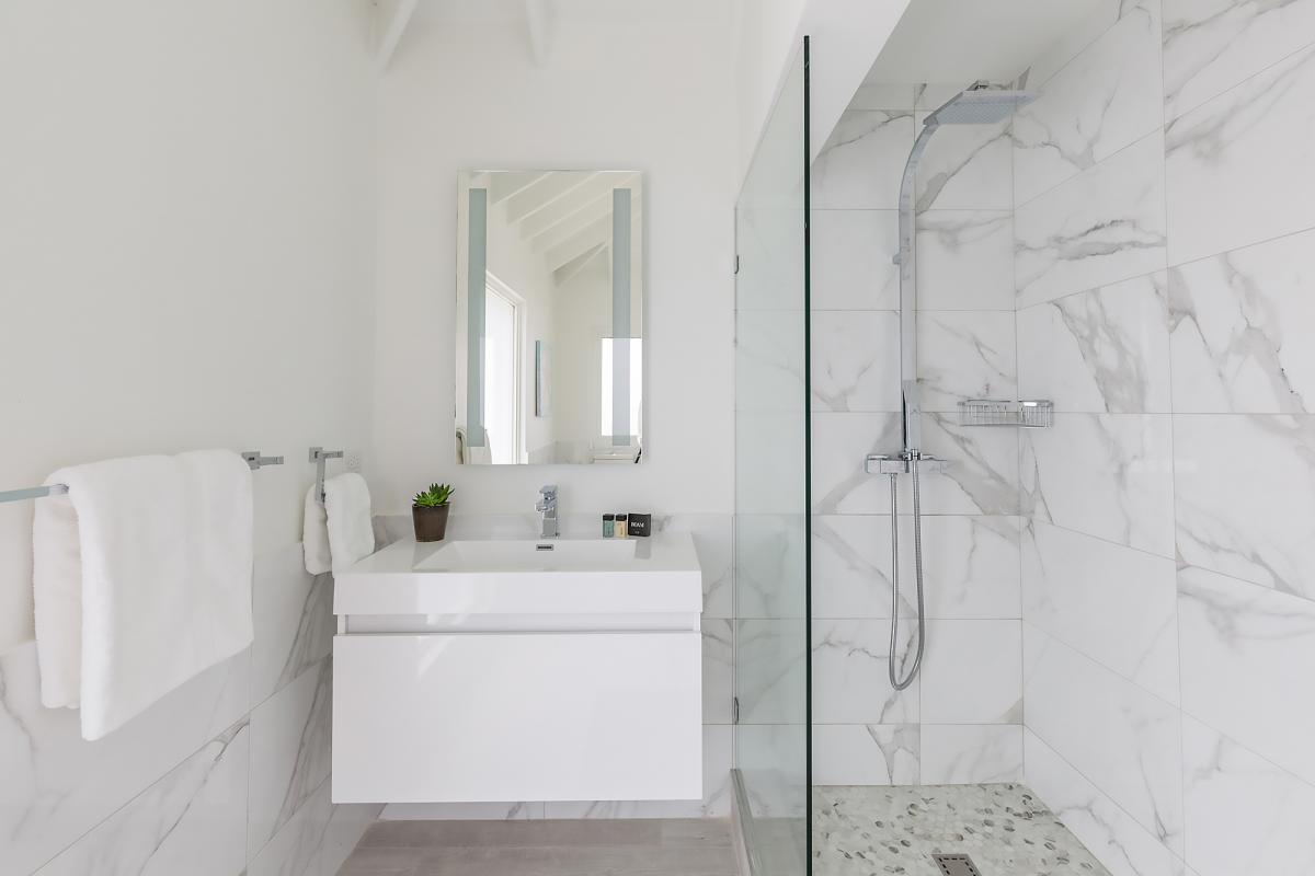 - Bedroom 2: King bed, en suite bathroom with shower, balcony, flat screen TV, AC