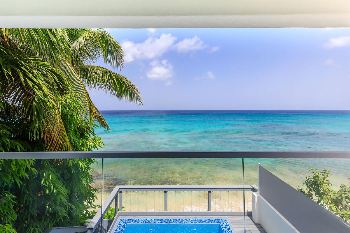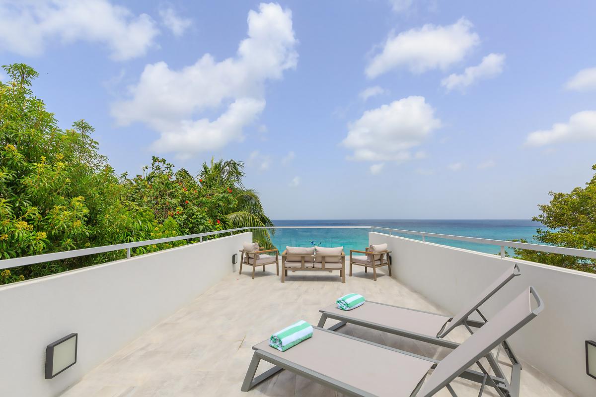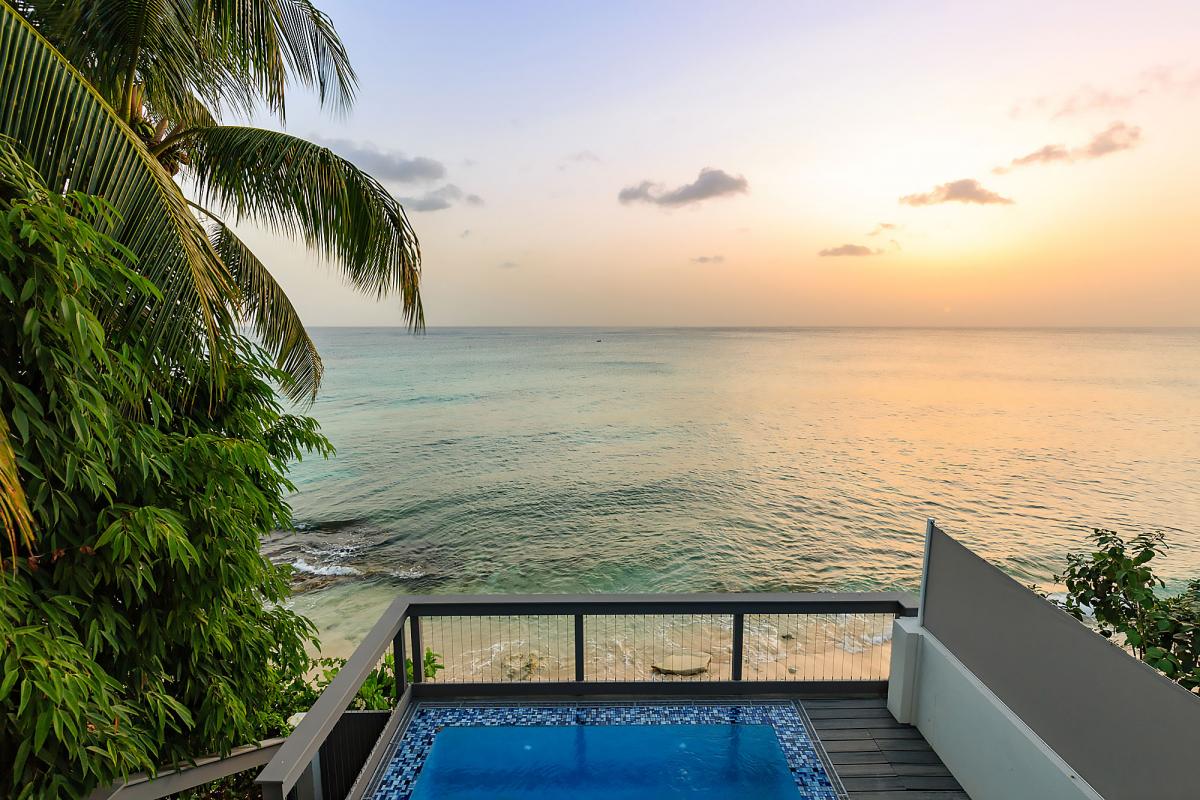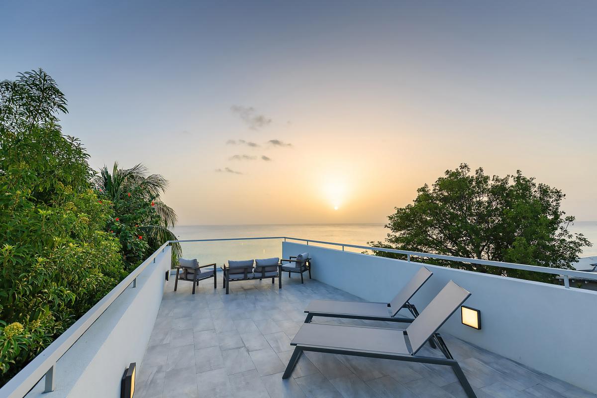 Imagine Villa is a contemporary 4 bedroom beachfront villa on the West Coast of Barbados. This 3 storey property has been newly renovated with a modern luxury design and stylish interiors. A star feature is the new penthouse suite, a spacious room with vaulted ceilings, plenty of natural light and floor-to-ceiling glass doors which lead out onto a private rooftop terrace with panoramic sea views – the perfect place to sunbath, relax or enjoy a sunset with friends. The villa also features an open plan living and dining room, fully equipped kitchen, Master suite and a further two guest bedrooms. All bedrooms have en suite bathrooms, AC and flat screen TV’s. The Master suite features a glass balcony overlooking the Caribbean Sea. The outdoor space benefits from a sun terrace with a salt water mirror pool and direct beach access.