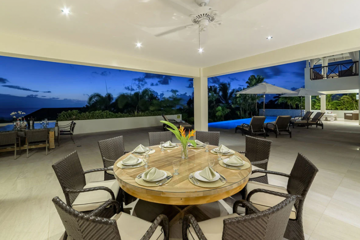 The villa’s exterior is just as inviting, with an infinity-edge pool surrounded by verdant gardens, a barbecue grill, and an outdoor dining area, ensuring the outdoor experience is as delightful as the indoor comfort. A dedicated team takes care of housekeeping, laundry, and daily culinary needs, promising a Barbados vacation filled with tranquility and rejuvenation.