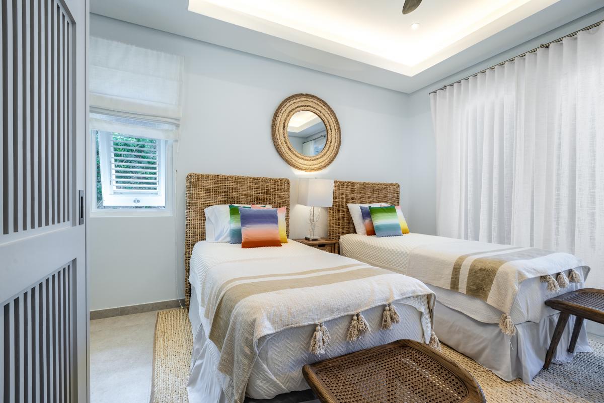 Bedroom 4: Two twin beds (convertible to King), ensuite bathroom with walk-in shower, AC ceiling fan, garden view