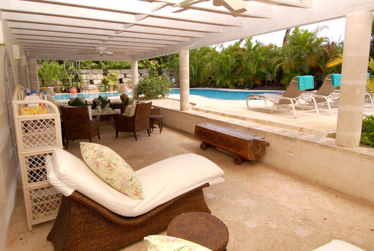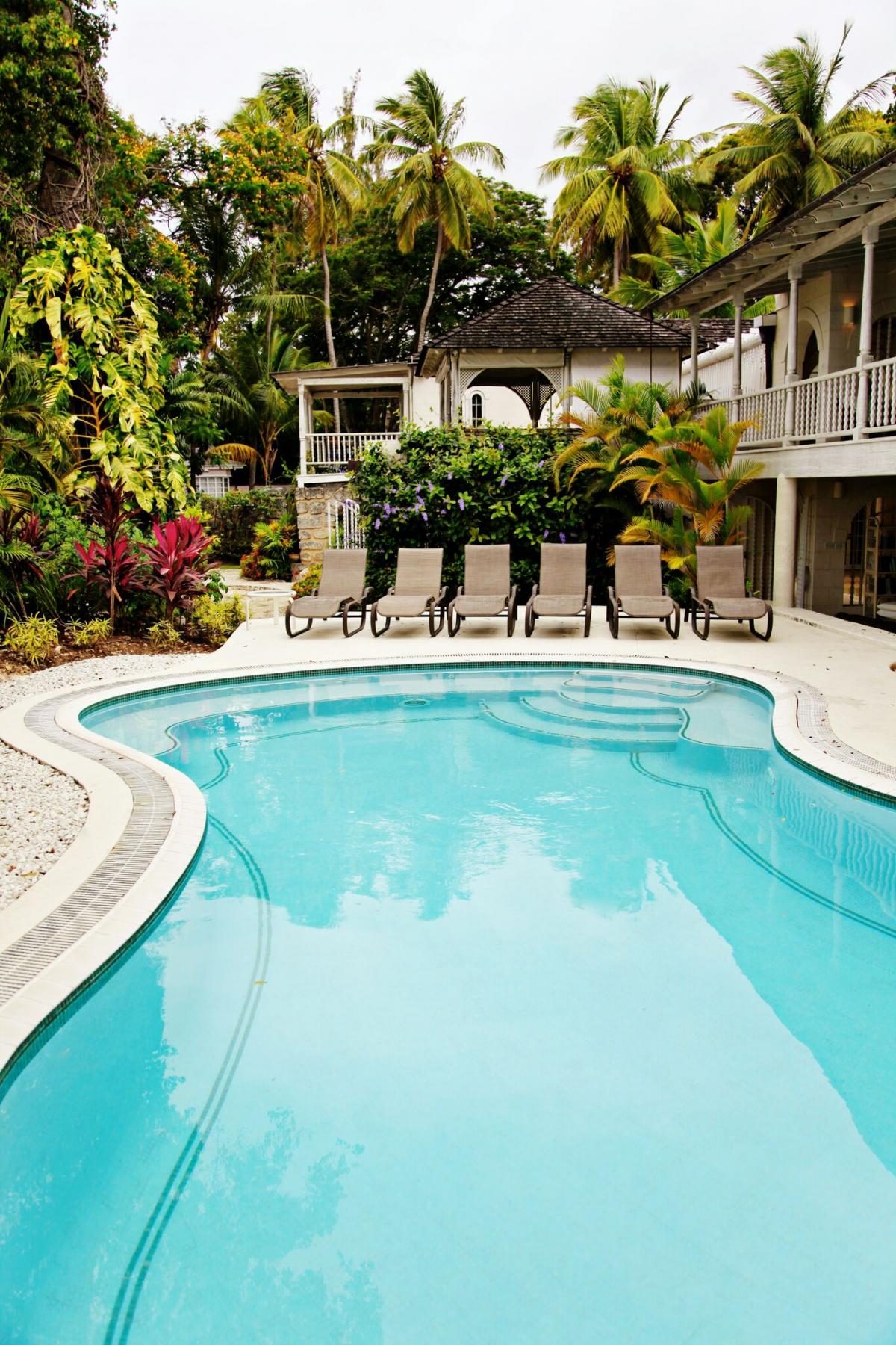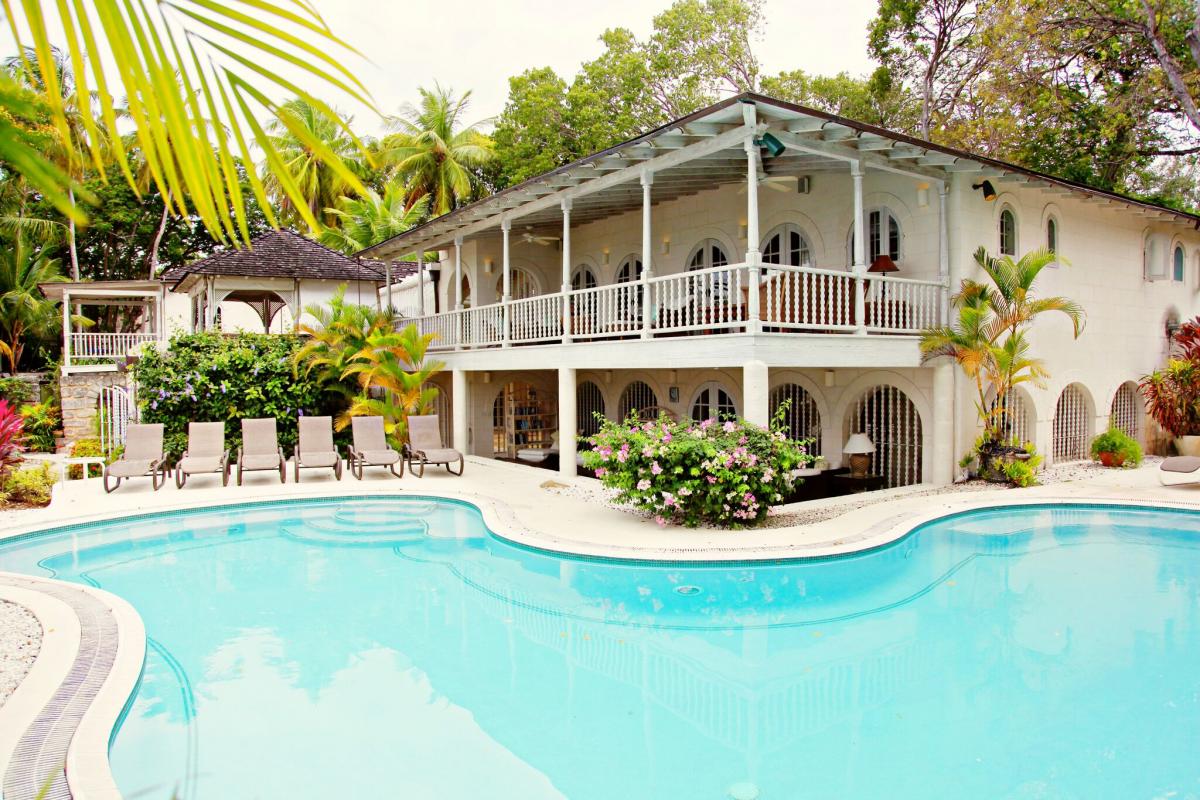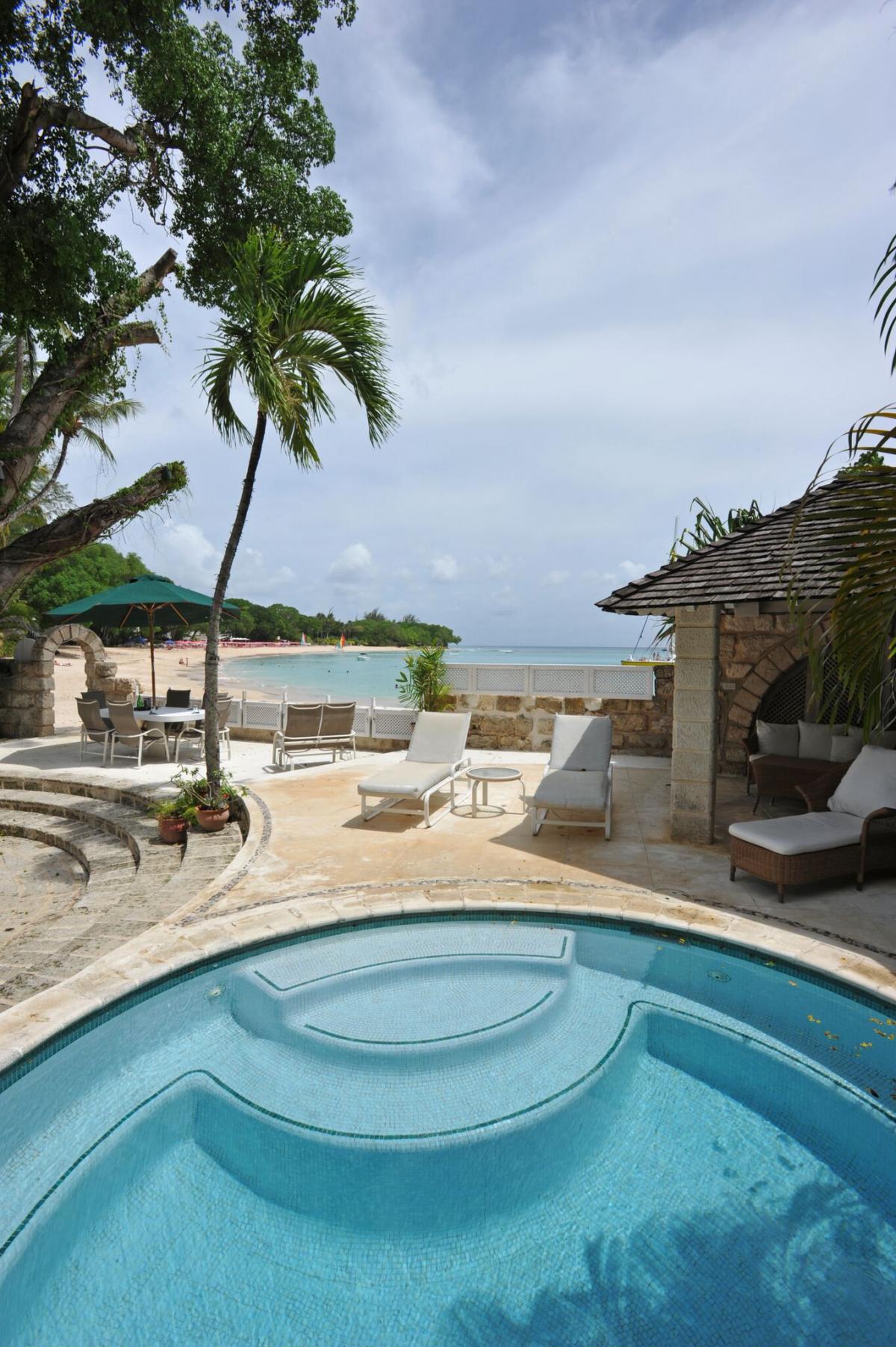 Landfall House, the distinctive, two story, six bedroom property, offers the ultimate in beachfront luxury, located right on famous Sandy Lane Beach, just north of Sandy Lane Hotel. It is an adventure from the moment you enter through the arched doorway into the attractive central courtyard with cascading tropical flowers and bubbling fountain. The ground floor reveals two air conditioned bedrooms with en suite bathrooms, a gazebo dining room, air conditioned bar with sitting area, office, and kitchen. There is a large free form infinity edged swimming pool as well as a separate heated jacuzzi, barbeque pit, and adjacent beachside gazebo. The pool terrace features a sunken seating area which leads to the air conditioned bar. Upstairs a magnificent master bedroom with en suite bathroom awaits you. The master bedroom balcony provides a magnificent view of Sandy Lane Beach. Three equally splendid air conditioned bedrooms all with en suite bathrooms provide ample space for large groups. Also located upstairs is an air conditioned TV room which provides comfortable seating and is equipped with satellite TV, DVD player, VCR and a surround sound stereo system. Throughout Landfall House a high tech sound system is capable of filling the entire villa with the music of your choice. A perfect house for entertaining, this unique property is ideal for sunset cocktails in the jacuzzi, a midday lunch party around the swimming pool, or a starlit barbeque dinner under the stars. Landfall House is one of the top villas in Barbados. Relax and enjoy Barbados vacation rentals with Villa Luxe.