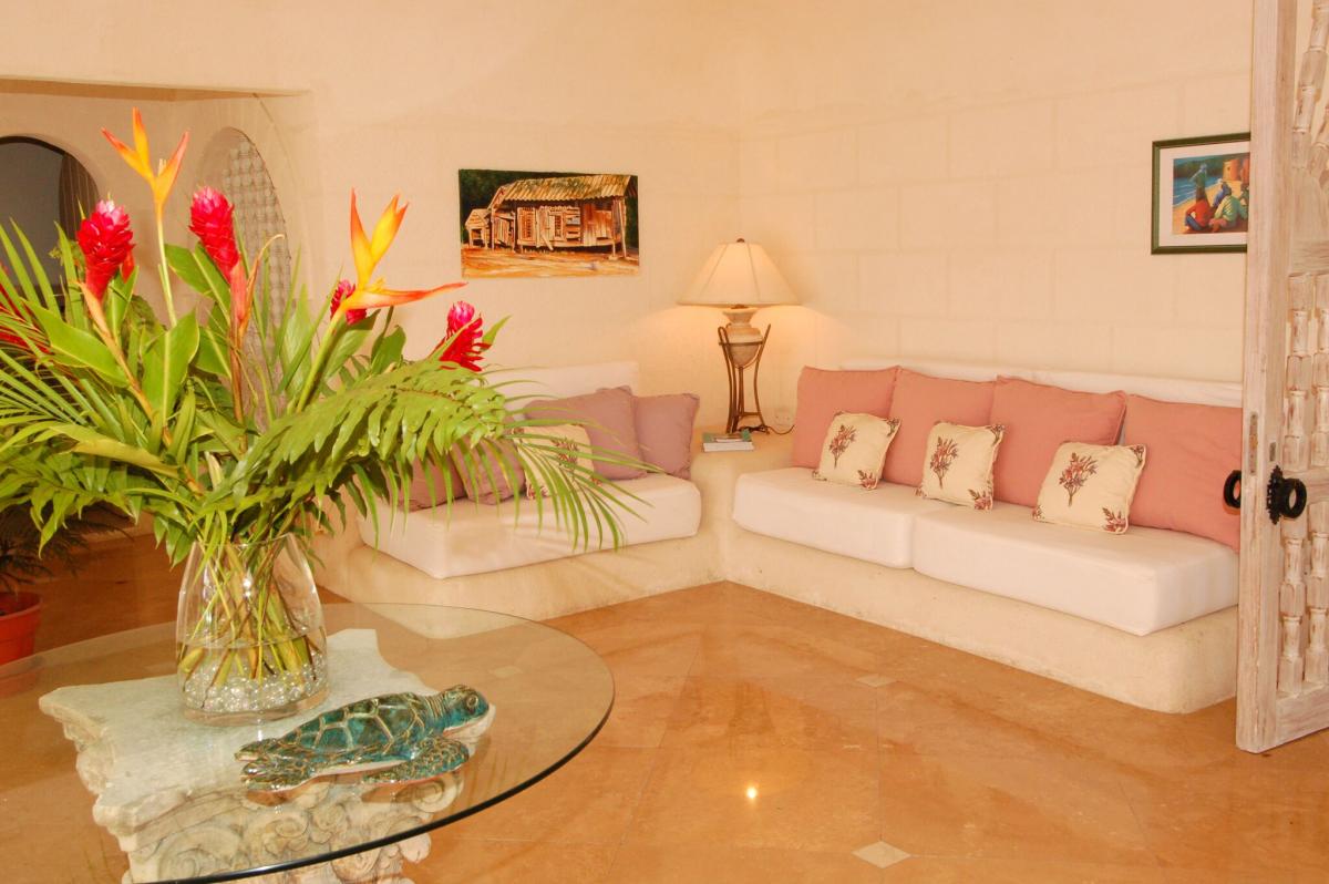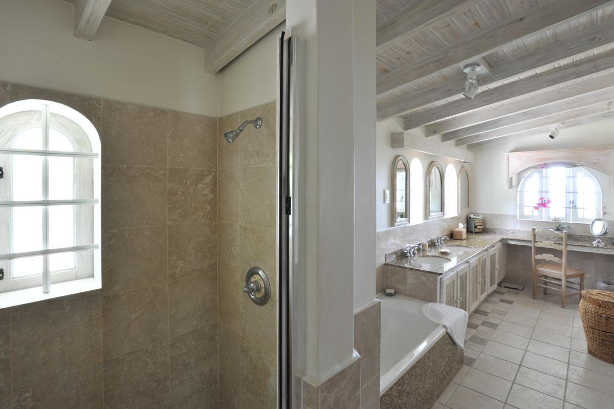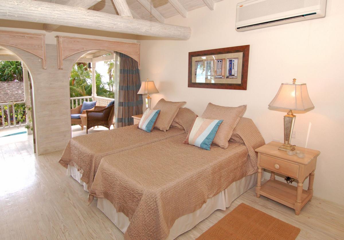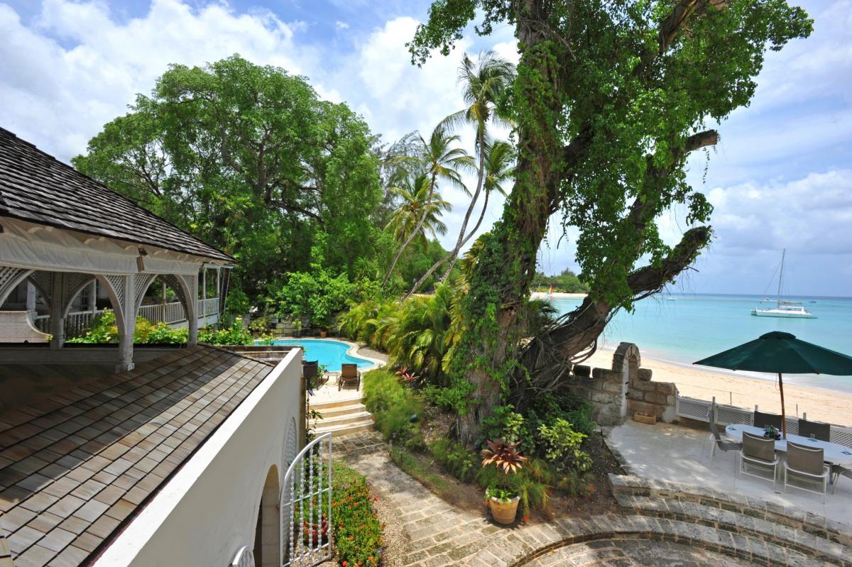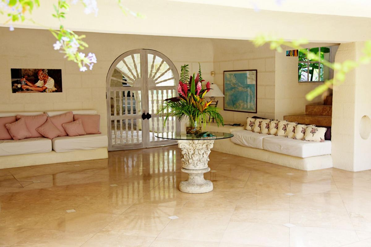 Landfall House, the distinctive, two story, six bedroom property, offers the ultimate in beachfront luxury, located right on famous Sandy Lane Beach, just north of Sandy Lane Hotel. It is an adventure from the moment you enter through the arched doorway into the attractive central courtyard with cascading tropical flowers and bubbling fountain. The ground floor reveals two air conditioned bedrooms with en suite bathrooms, a gazebo dining room, air conditioned bar with sitting area, office, and kitchen. There is a large free form infinity edged swimming pool as well as a separate heated jacuzzi, barbeque pit, and adjacent beachside gazebo. The pool terrace features a sunken seating area which leads to the air conditioned bar. Upstairs a magnificent master bedroom with en suite bathroom awaits you. The master bedroom balcony provides a magnificent view of Sandy Lane Beach. Three equally splendid air conditioned bedrooms all with en suite bathrooms provide ample space for large groups. Also located upstairs is an air conditioned TV room which provides comfortable seating and is equipped with satellite TV, DVD player, VCR and a surround sound stereo system. Throughout Landfall House a high tech sound system is capable of filling the entire villa with the music of your choice. A perfect house for entertaining, this unique property is ideal for sunset cocktails in the jacuzzi, a midday lunch party around the swimming pool, or a starlit barbeque dinner under the stars. Landfall House is one of the top villas in Barbados. Relax and enjoy Barbados vacation rentals with Villa Luxe.