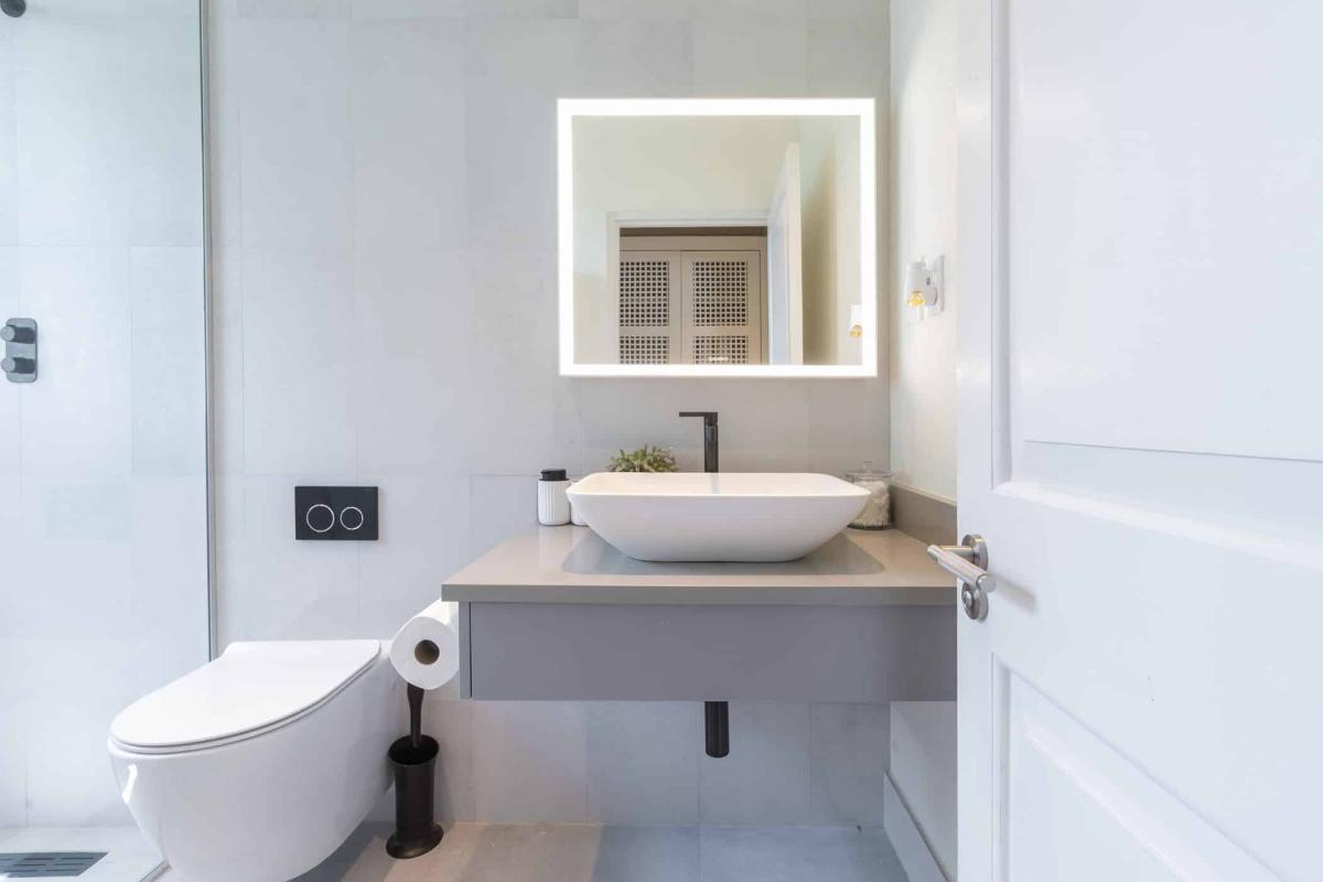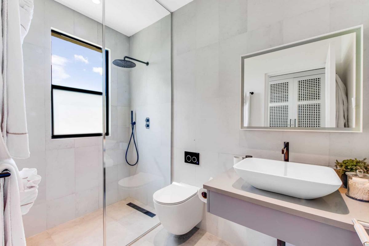 The villa’s interiors feature soaring ceilings, sleek contemporary furnishings, and carefully curated décor that create an atmosphere of understated luxury. A fully automated entertainment system, Apple TV, and Sonos sound system provide effortless modern convenience throughout. The main residence includes four beautifully appointed bedrooms, while a separate self-contained cottage offers two additional suites—ideal for guests or extended family seeking privacy. With three king suites and three twin bedrooms, the layout offers exceptional flexibility for families and larger groups.