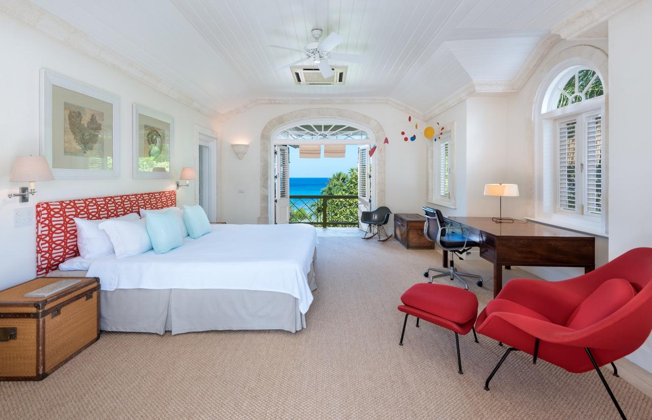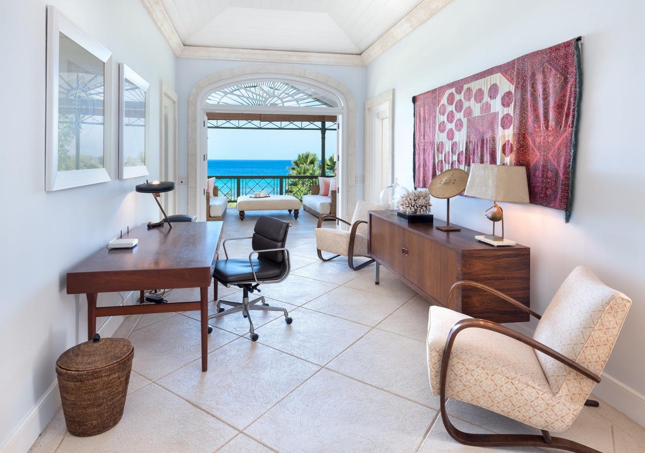 Three guest suites feature entrances to the ground floor terrace with views of the pool and sea. The master bedroom occupies the entire first floor and includes a sitting room, private balcony and luxurous bathroom.