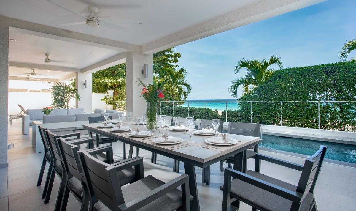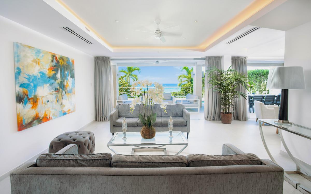 Located on the West Coast of Barbados, The Villa at St. James is a ground-floor condo providing a luxurious retreat with stunning views of Paynes Bay's pristine white sands and turquoise waters. Nestled in an exclusive development, this Barbados condo offers a seamless connection to its breathtaking surroundings, making it the perfect getaway for an exceptional Barbadian vacation. Floor-to-ceiling glass doors greet you upon entry, framing the glistening waters and setting the tone for a remarkable stay. The open-plan living and dining areas flow effortlessly to the covered deck, pool, and Caribbean Sea, while the ultra-modern kitchen, equipped with cutting-edge appliances, provides unobstructed ocean vistas.