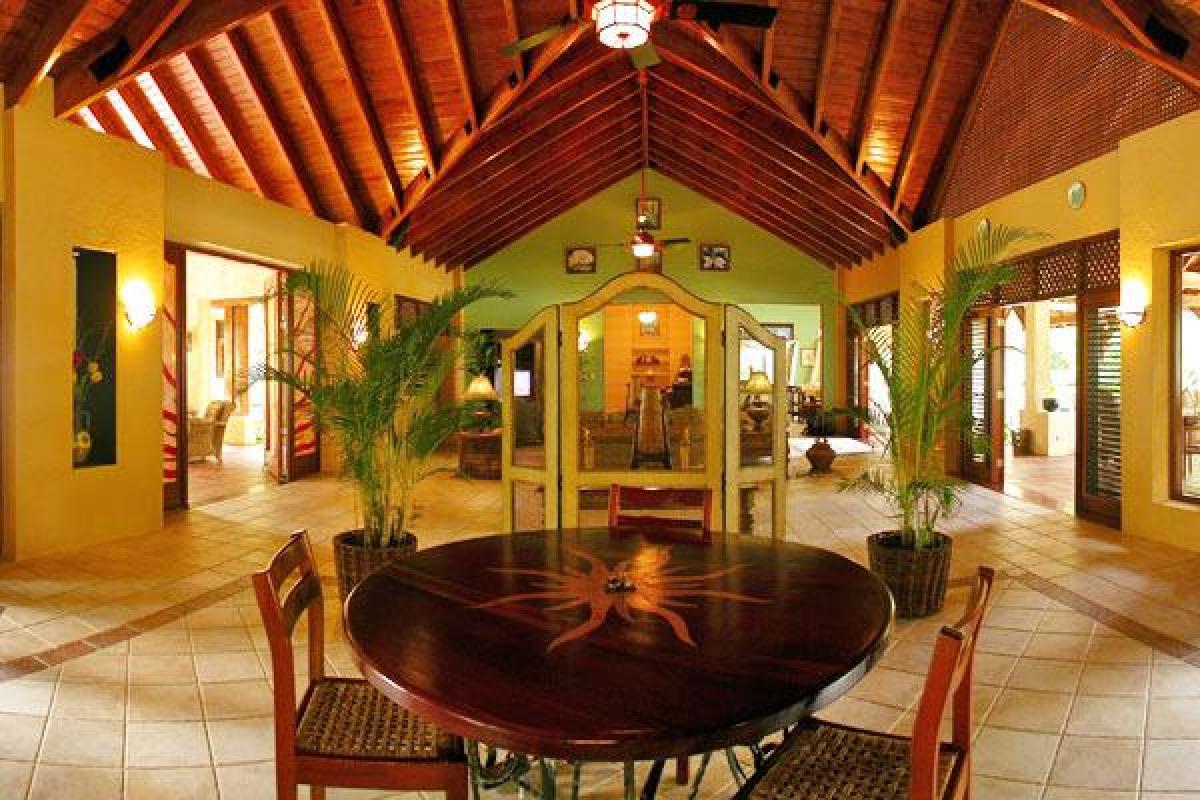 Set on two acres of beautiful beachfront on the Northern coast of the Dominican Republic, this eight bedroom luxury villa is absolutely breathtaking. This custom designed, Bali influenced home was built on a 20 foot cliff and gives the most spectacular views. This fully staffed, private oasis is what vacation and luxury are all about. The lush grounds surrounding the Sunrise Villa provide ample hideaway spots for reading, resting or romantic seclusion. A little later, go for a snorkel. Have a picnic. Enjoy Caribbean deep sea fishing or some outstanding Dominican Republic golf. Play a friendly game of volleyball, or just mellow out and lay back in the sun. Whatever you’d like to eat or drink, just mention it to one of our staff, and they'll cheerfully bring it. Everything at the Villa is here to make this your own unforgettable Caribbean getaway.