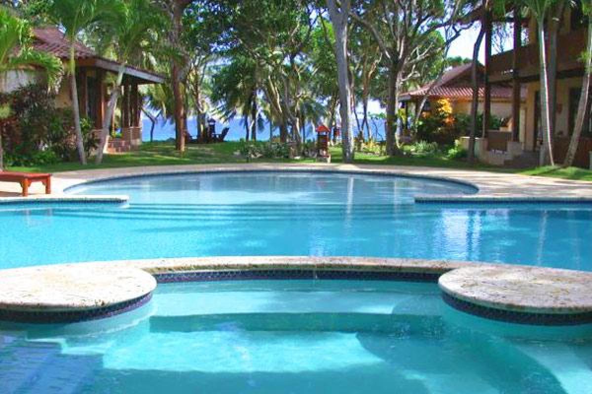 The accomodations: The main house has a spacious master suite and the three additional cottages house the remaining bedrooms. The Diamonte Suite is on the second floor of the main house and has a king size bed, full bath with Jacuzzi, private balcony and sitting area. The Presidente Suite has separate sleeping and living areas, a king sized bed plus a queen size sleeper. There is a two person Jacuzzi, separate shower and a private balcony with ocean and pool views. The Piscina Suite comes with two bedrooms, two baths and a living room. There are queen size beds and a twin sleeper. The living room has a full size futon. There is a poolside veranda and you will have pool and ocean views. The Royal Palm Suite and The Semana Suite are identical. They both have a king size bed, amazing ocean views and a private veranda. Their full baths come with a Jacuzzi and an outdoor shower.