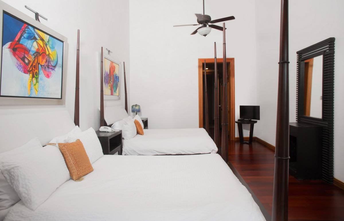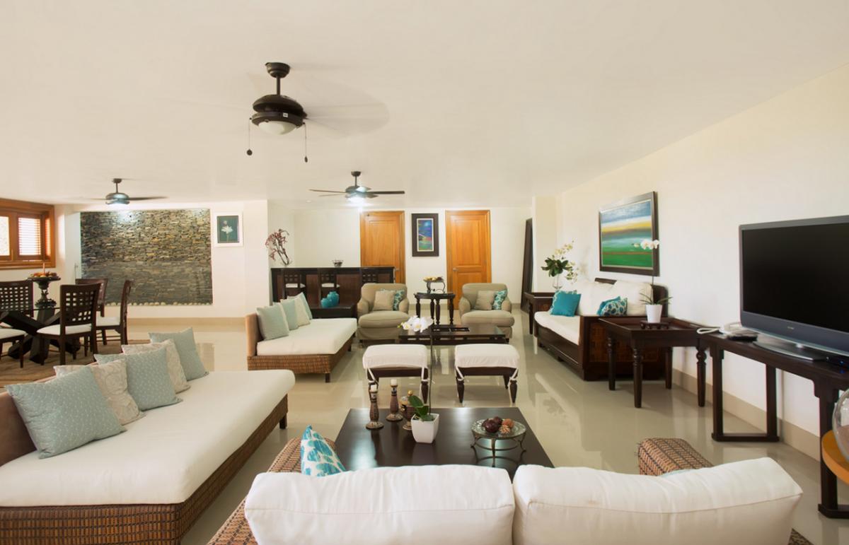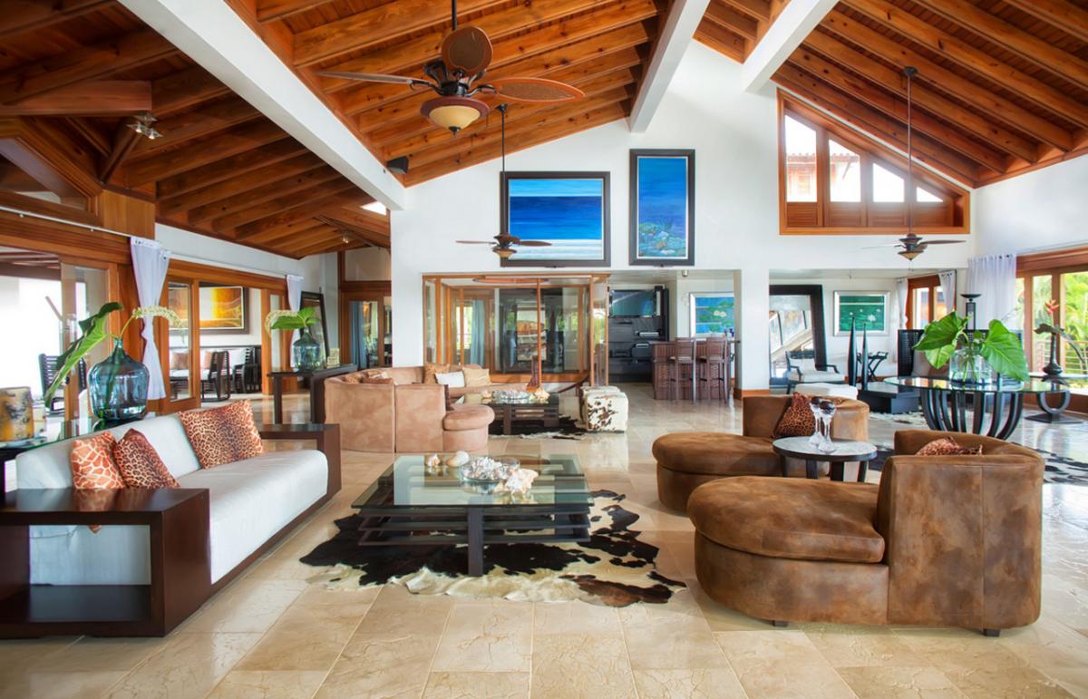 This sprawling two-story villa is stylish, sleek, and sophisticated. Enjoy views of both the Caribbean Sea and the Marina—both of which are just minutes away from your front door. Inside there are expansive common areas perfect for entertaining, while outside a large pool and Jacuzzi are the ideal spots for relaxation.
