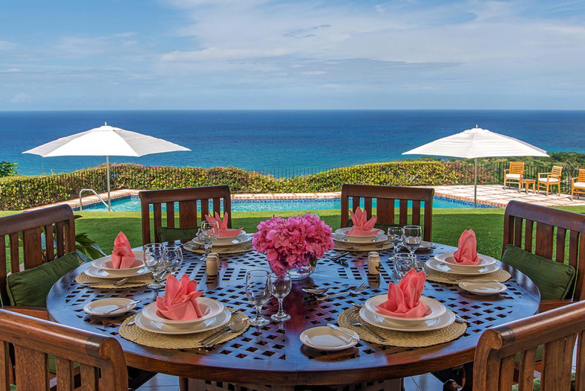 The villa's layout in three wings +cottage is marvelous for two- and three-generation families. Cielo is notable for not only its breathtaking view but also for its spacious bedrooms; very large lawns for kids to play; and its marvelous, much-lauded Chef Valerie who knows her stuff brilliantly when it comes to delighting kids and the most discriminating adults too. This home away from home is spotlessly clean and loaded with amenities like flat-screen TV's in every room, wifi throughout, excellent sound system, glamorous master bathrooms and mirrored bar with icemaker. The verandah is well-furnished and extraordinarily comfortable. This wonderful porch overlooks the pooland beyond to"that view." Sunsets from the verandah and the pool terrace are magic and memorable.Have your camera ready.