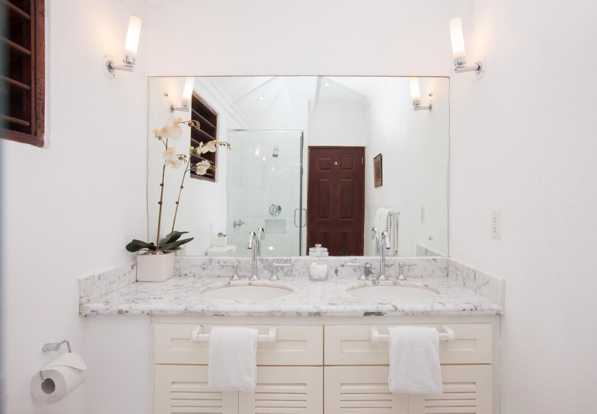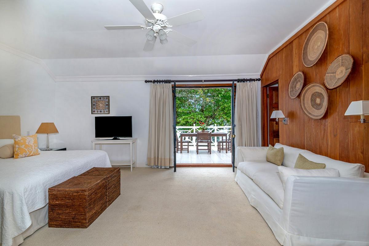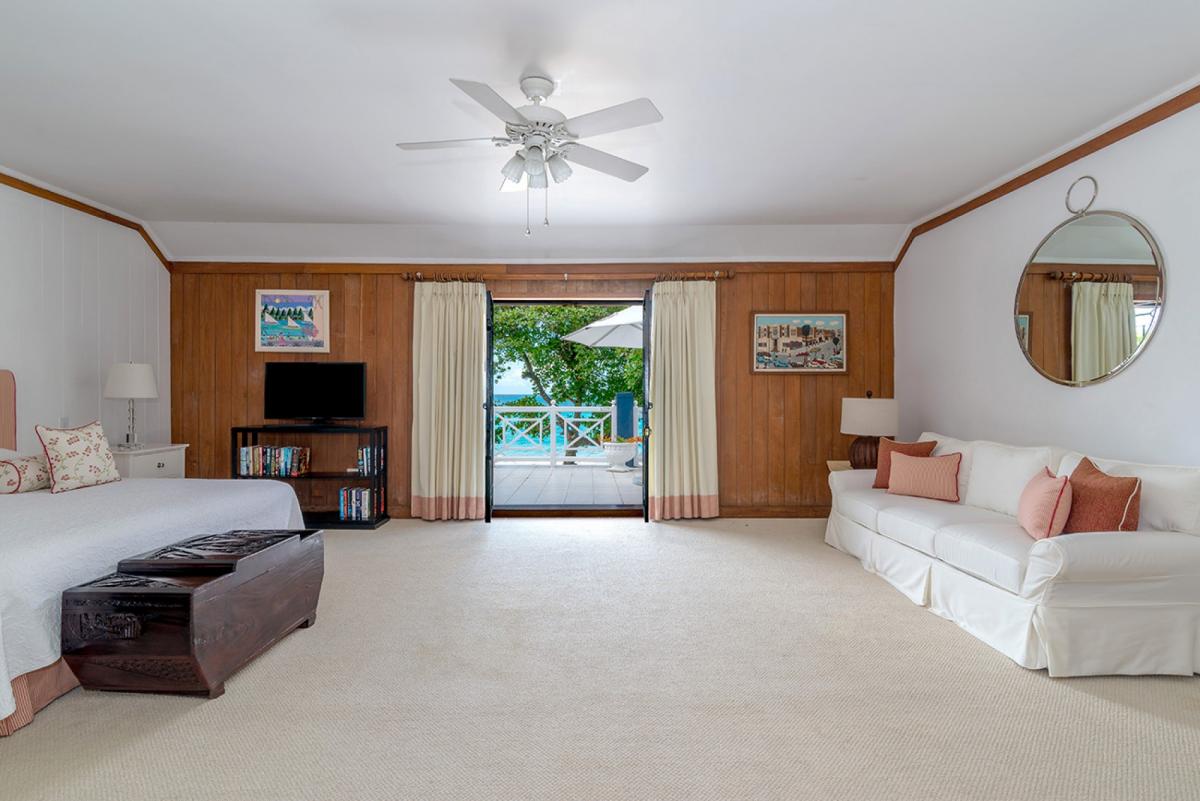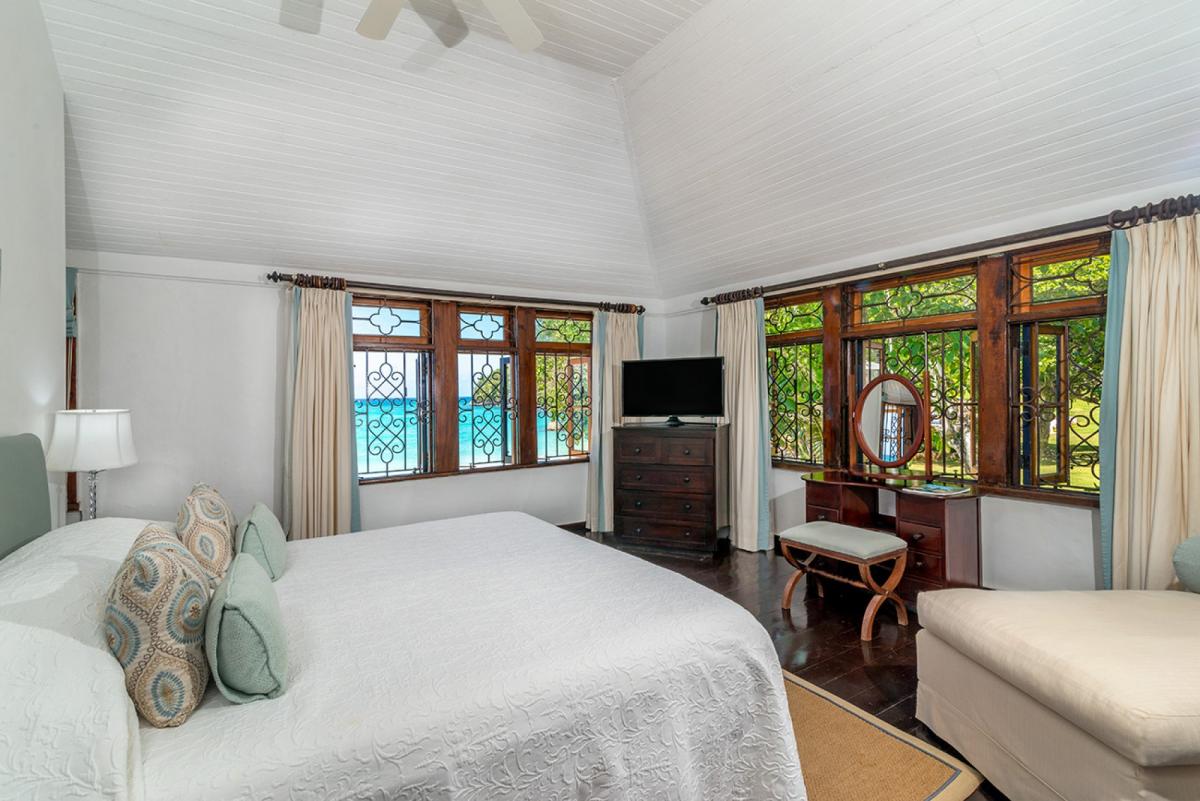 Today, Frankfort is a paradigm of 21st Century laid-back elegance. A brilliant half million dollar renovation introduced Italian Travertine floors, chic and comfortable sitting areas in crisp white fabrics, and stunning Euro-style modern bedrooms with all new en-suite bathrooms and glass-wall showers. All furniture and fabrics were imported from the UK and Europe, many having been designed exclusively for Frankfort by Caroline Shasha Interiors of London. The original two-foot thick rough stone walls and gun slots are still in place, reminders of Frankforts days as a British fort defending against Spanish invaders and pirates. Two old cannons were dug up from the beach and now hold reign squarely on the lawn.