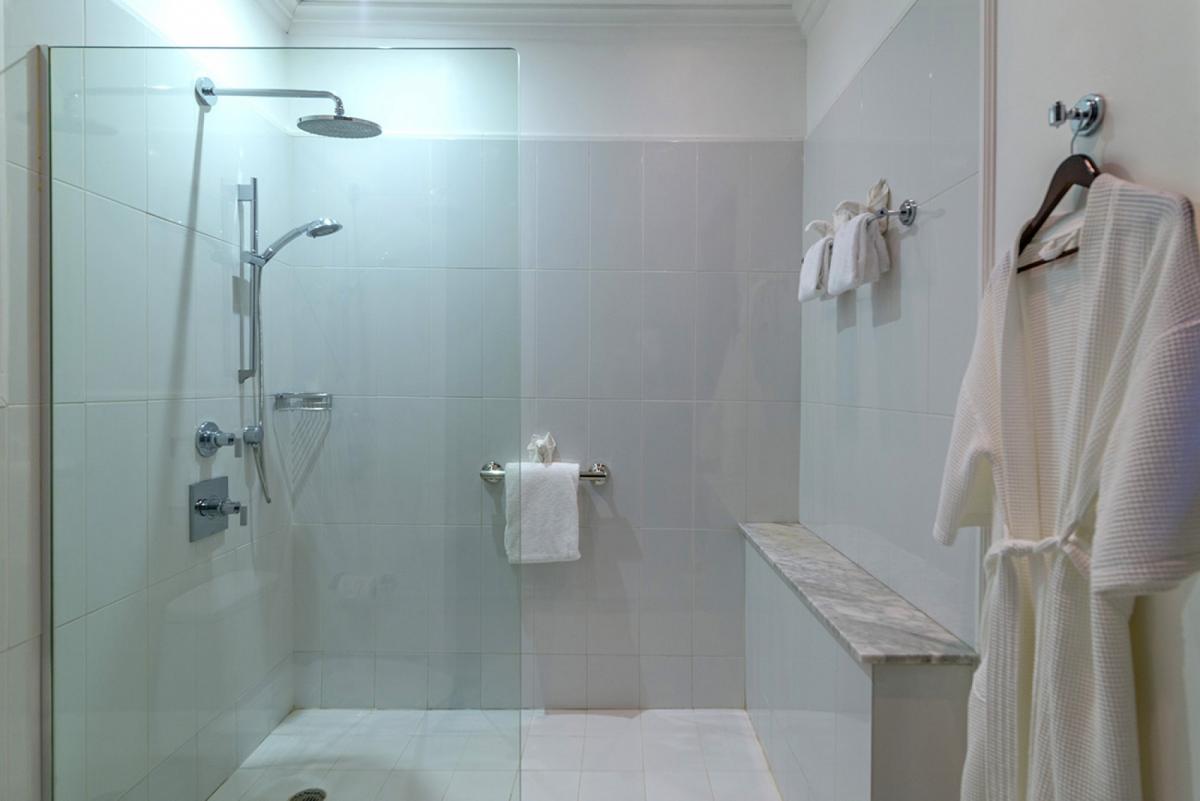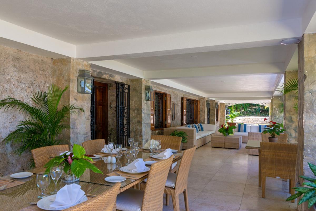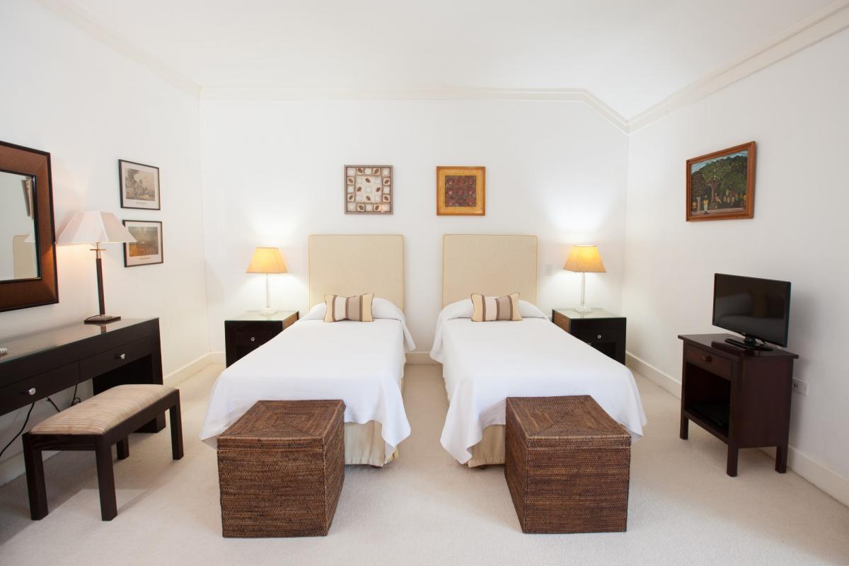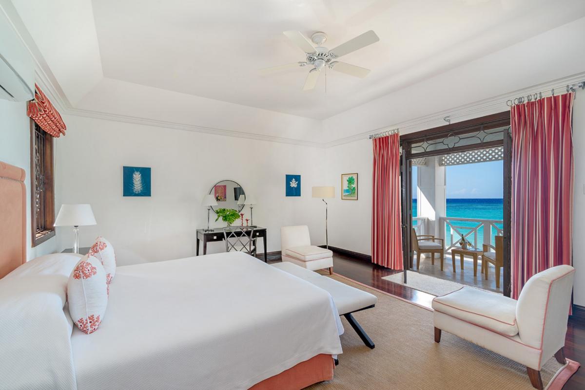 Today, Frankfort is a paradigm of 21st Century laid-back elegance. A brilliant half million dollar renovation introduced Italian Travertine floors, chic and comfortable sitting areas in crisp white fabrics, and stunning Euro-style modern bedrooms with all new en-suite bathrooms and glass-wall showers. All furniture and fabrics were imported from the UK and Europe, many having been designed exclusively for Frankfort by Caroline Shasha Interiors of London. The original two-foot thick rough stone walls and gun slots are still in place, reminders of Frankforts days as a British fort defending against Spanish invaders and pirates. Two old cannons were dug up from the beach and now hold reign squarely on the lawn.