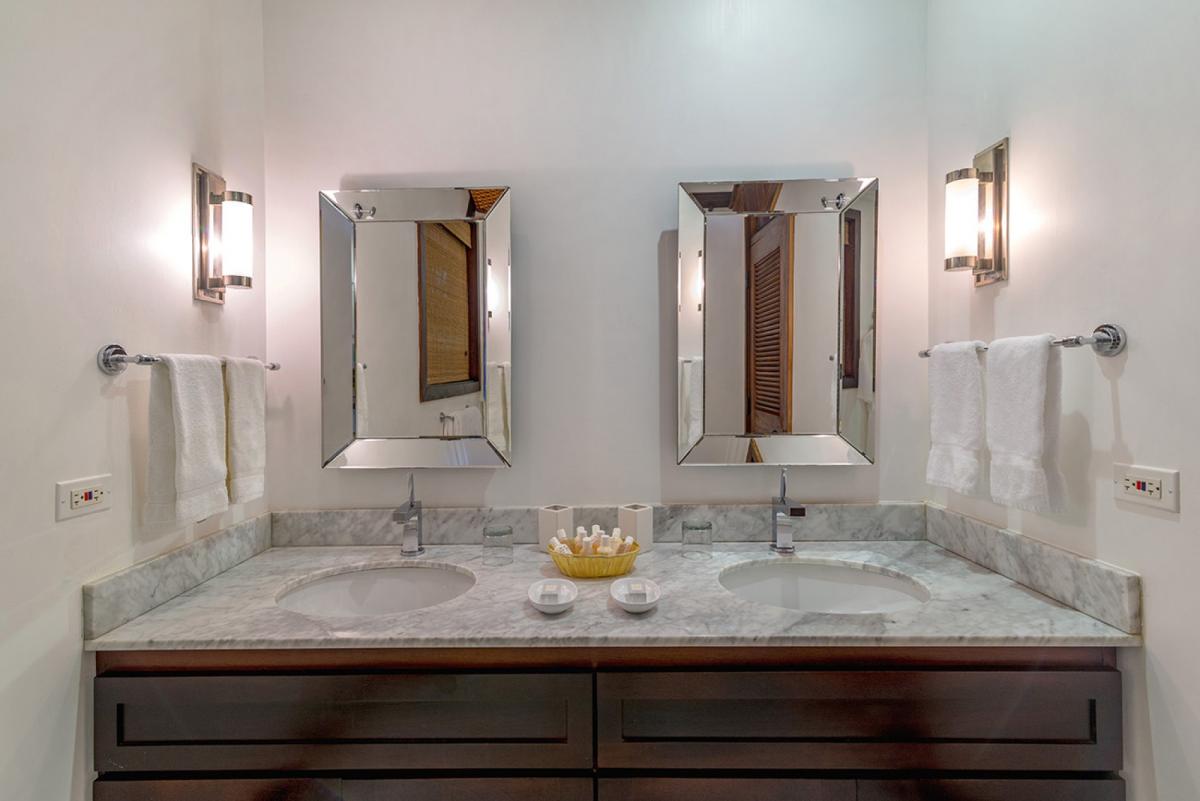 Bedroom 4: This room is located upstairs and is equipped with an optional king-size bed or twin-sized beds, a walk-in closet, blackout curtains, remote-controlled quiet air conditioning, and an ensuite bathroom with a double-basin marble vanity and a walk-in shower. Bedroom 4 also overlooks the beach and ocean.