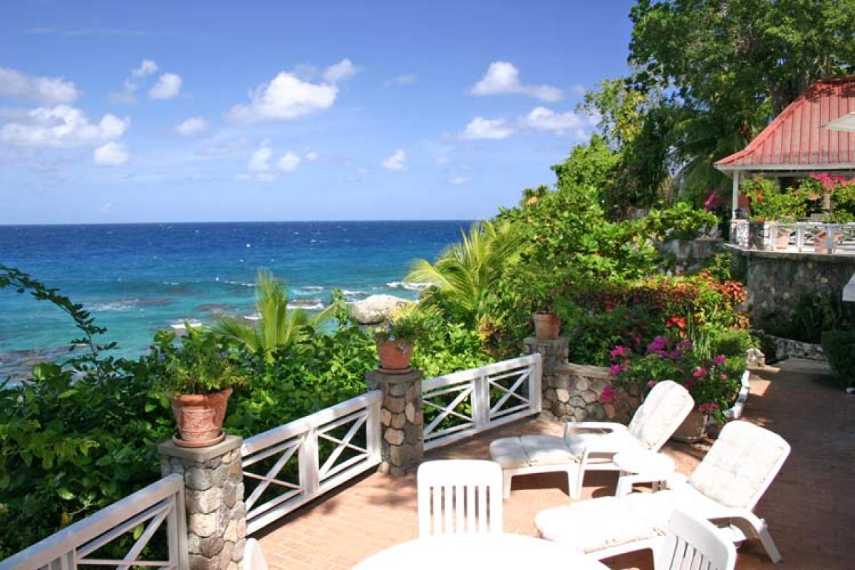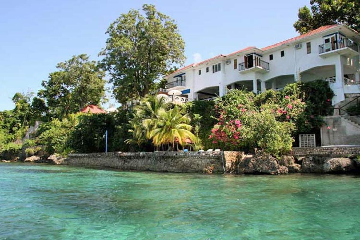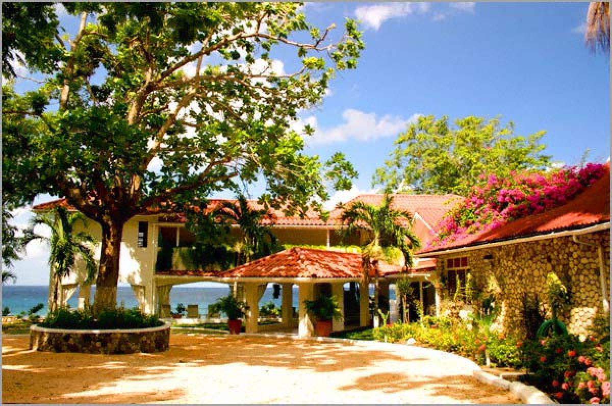 Golden Clouds villa is a luxurious 9 suite estate situated in a park like, 6 acre setting. It is a spectacular oceanfront villa located on Jamaica's fabled North Coast in the picturesque village of Oracabessa. Located a fifteen minute drive from Ocho Rios, the villa overlooks a private palm fringed, white sand beach and the Caribbean Sea. Surrounded by manicured lawns and gardens, the property consists of a main villa with 7 suites and a garden villa with an additional 2 suites and its own kitchen and living area. Each building has a large veranda and its own swimming pool. Golden Clouds is situated between the Golden Eye Resort where Ian Fleming wrote many of the James Bond novels and Noel Coward's "Firefly". The villa consists of 6 landscaped acres of tropical beauty and 700 feet of oceanfront with it's own private white sand beach. From the beach, step into the Caribbean Sea and enjoy the many wonders of snorkeling right in front of the villa or relax on the ocean dock anchored a few feet from the beach. With an 80% return rate for guests, Golden Clouds is recognized as one of the top villas in Jamaica. It is renowned for its excellent service staff, luxurious accommodations, superb and varied kitchen skills, and preserving the simple island beauty in its natural state. This 5 star, private villa is available for your pleasure, retreat, reunion, or getaway. It is perfect for families on holiday, weddings, or reunions, a business workshop or incentive trip, private retreats, or whatever you may need. The relaxing environment and amenities offered can be your home away from home in a tropical paradise.