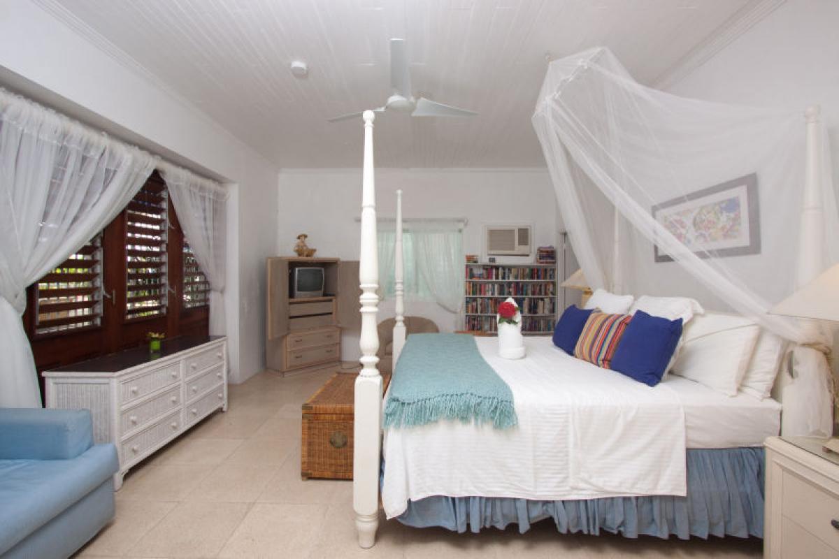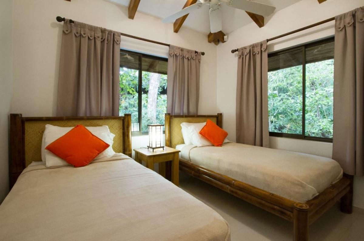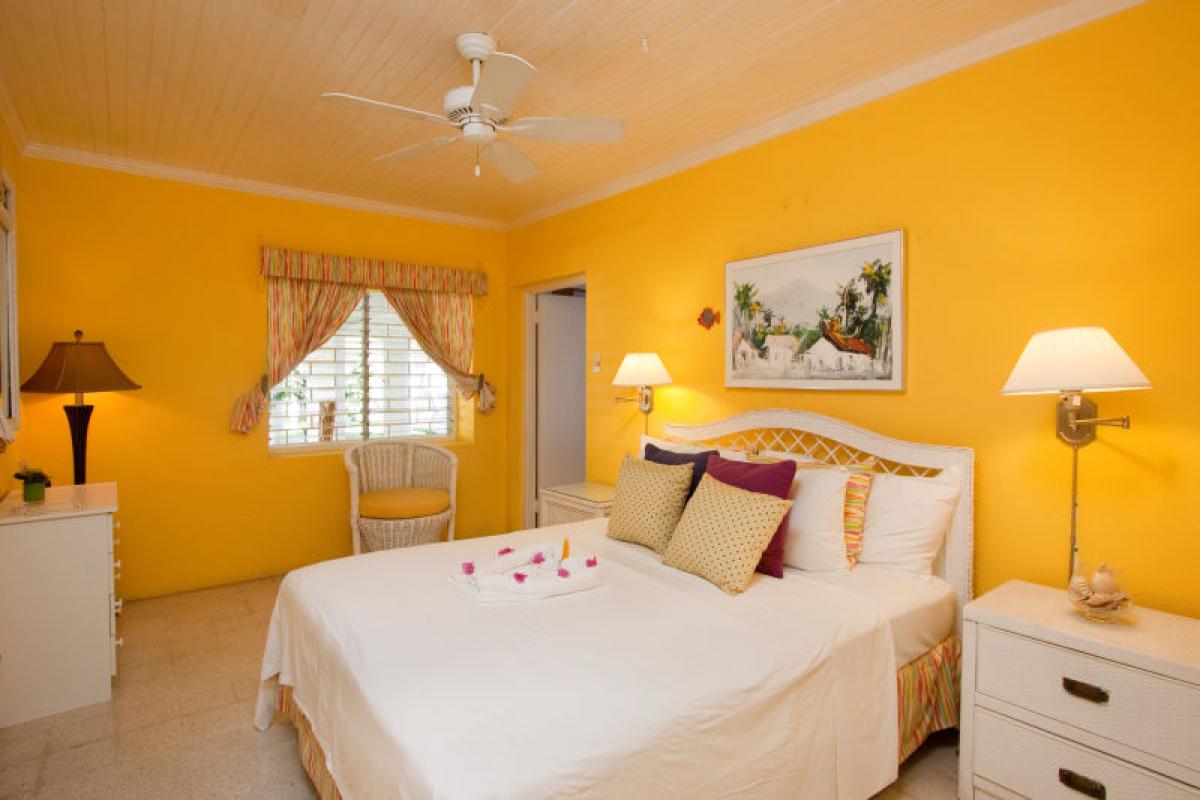 Bedroom 1: King bed (can be converted to two twin beds), AC, en suite bathroom with bathtub and shower, TV, ceiling fan, safe