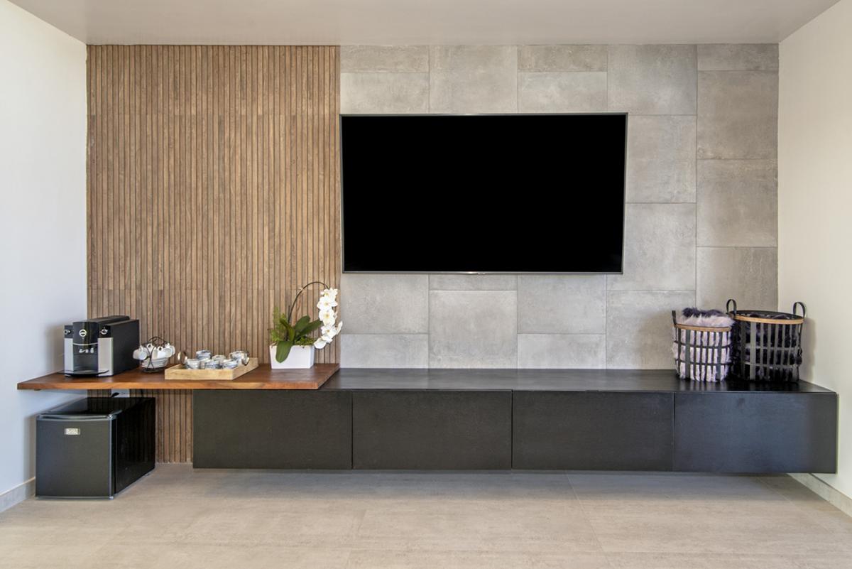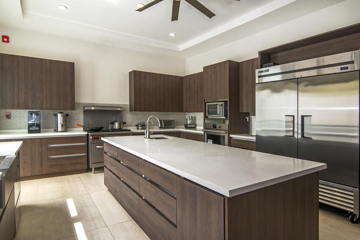 The main level of Happy Hour has a professional kitchen, where the chef and pastry chef prepare incredible meals for guests. There are also two bedrooms on this floor, one of which is one of the master suites and steam and sauna room. Both bedrooms on this level have an over-water private terrace that provides access to the main outdoor living areas. The upper level has five bedrooms. The massage/spa room with a garden-facing balcony, a media room equipped with a 96 inch TV and its own entertaining balcony, and a game room equipped with a pool table, arcade basketball, Pacman, and a foosball table.