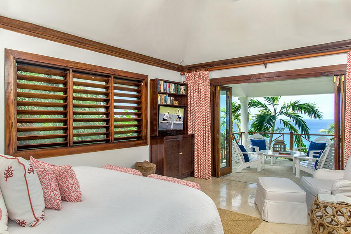 Bedroom 5: King bed (can be converted to two twin beds), en suite bathroom with double vanity and walk-in shower, ocean view, door to verandah