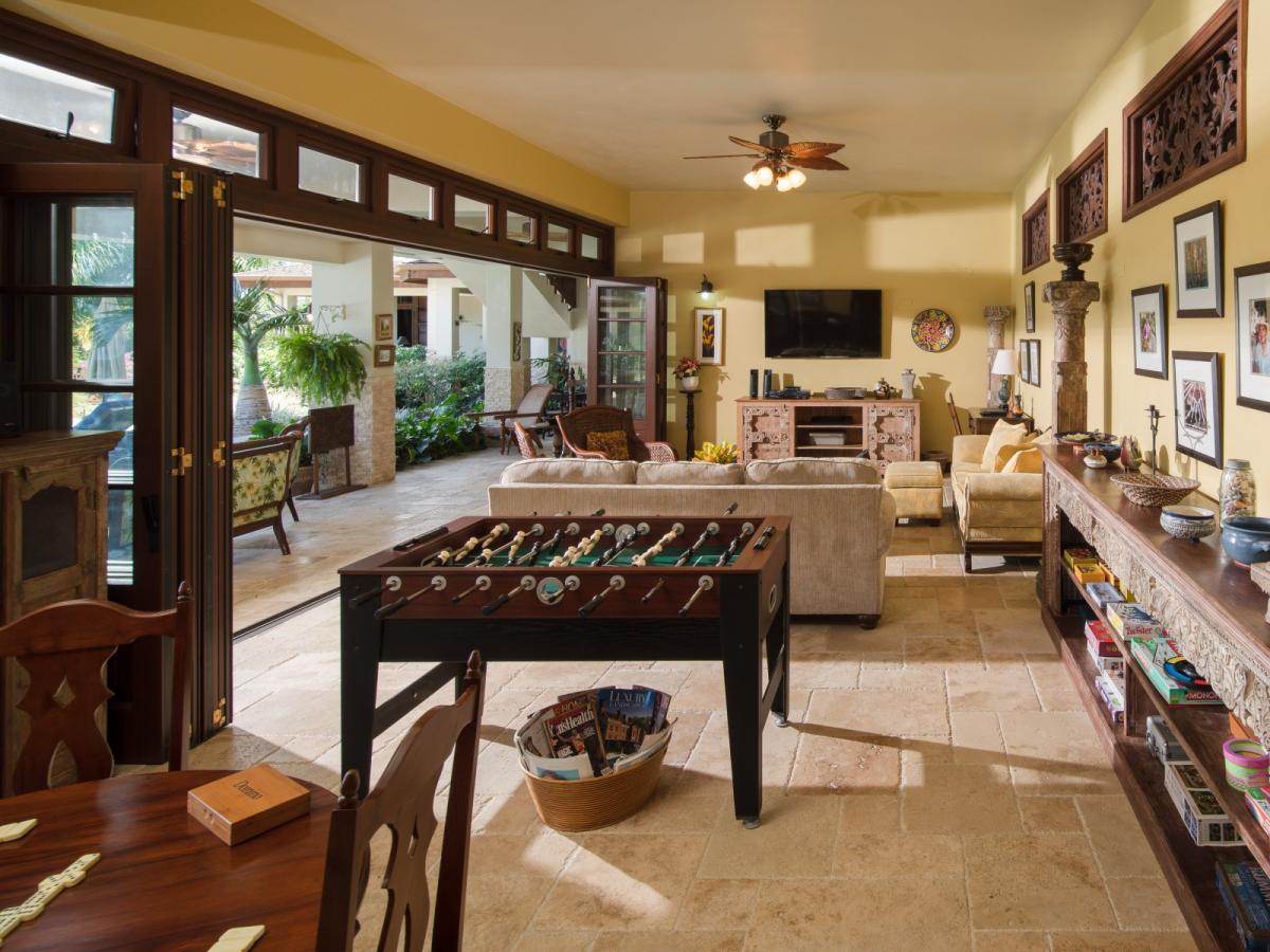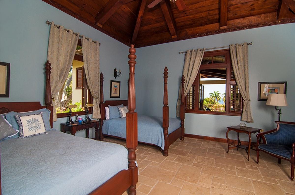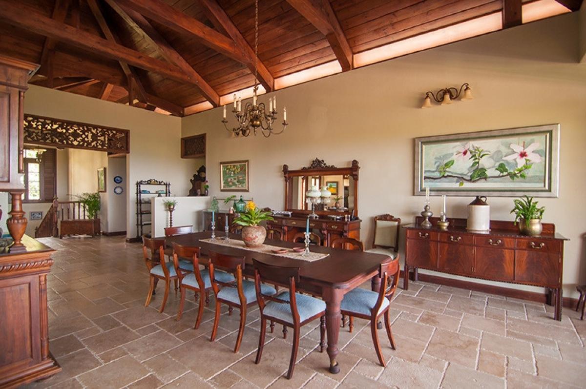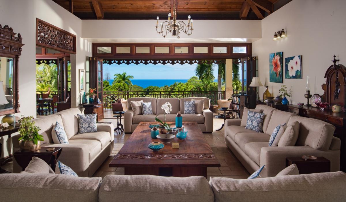 With its soaring ceilings and cool travertine floors there is a warm and welcoming old world feel that will make it your home away from home. A comfortable getaway where friends and family of all ages can gather, relax and entertain, where outdoor living is maximized by a 45”x20” heated swimming pool surrounded by large verandas offering breathtaking views of the lush tropical gardens, Tryall Club and the Caribbean Sea beyond.