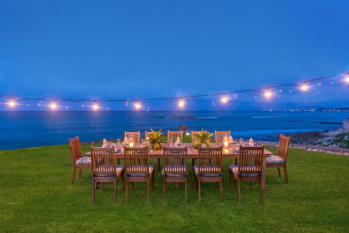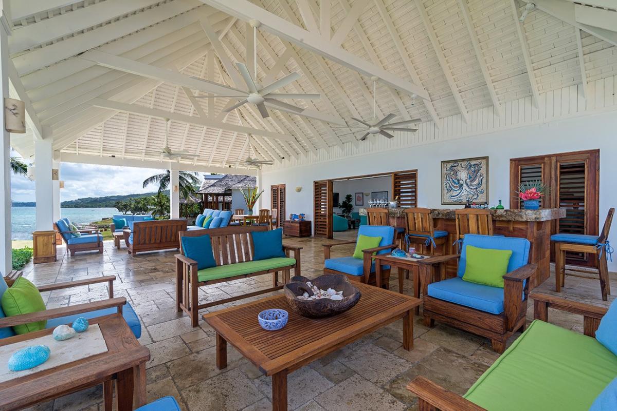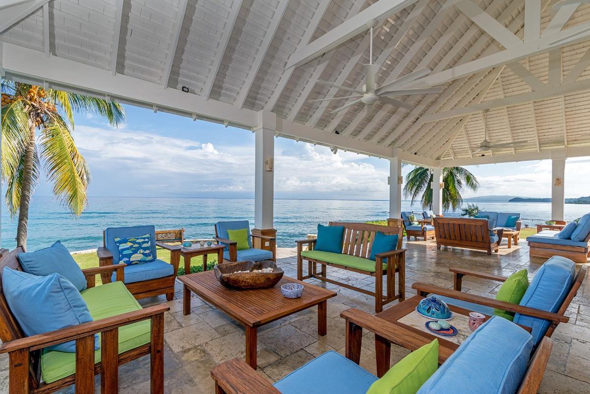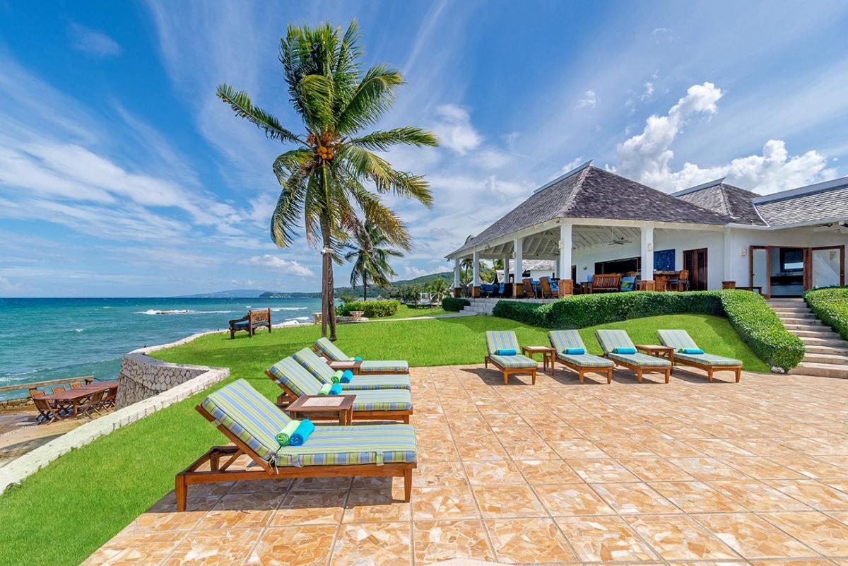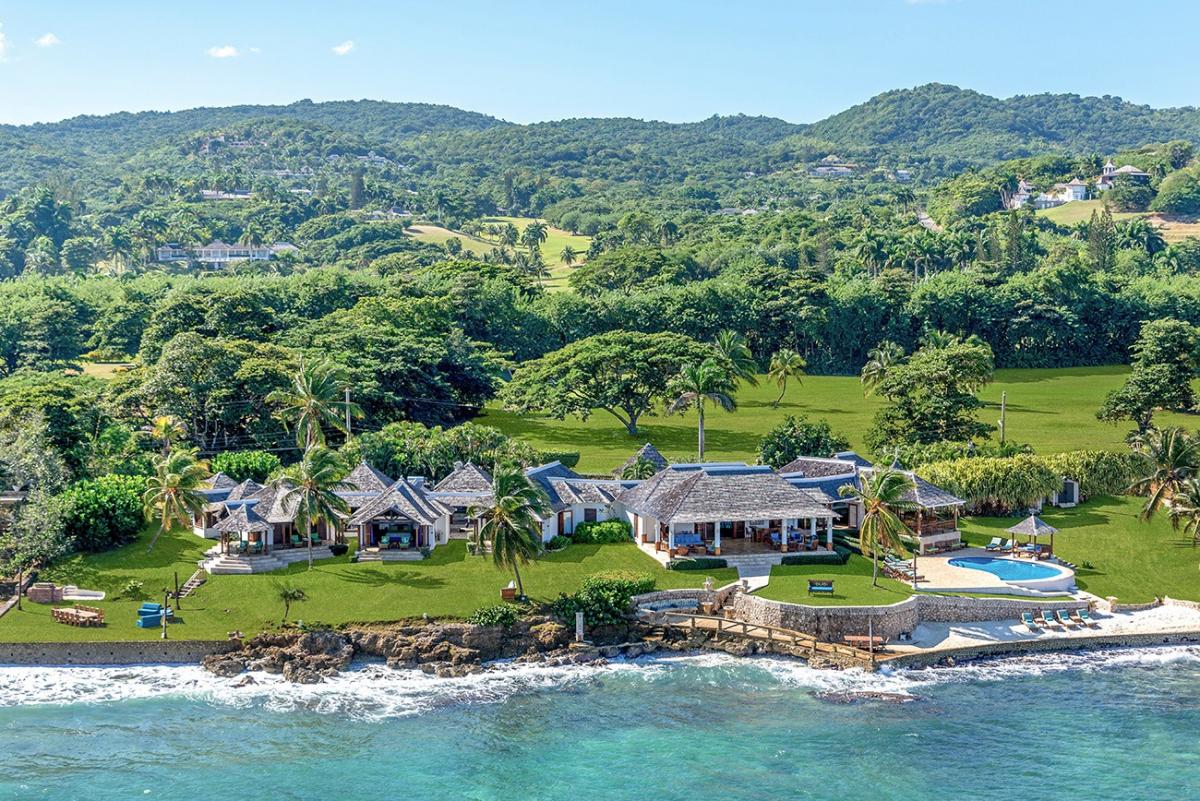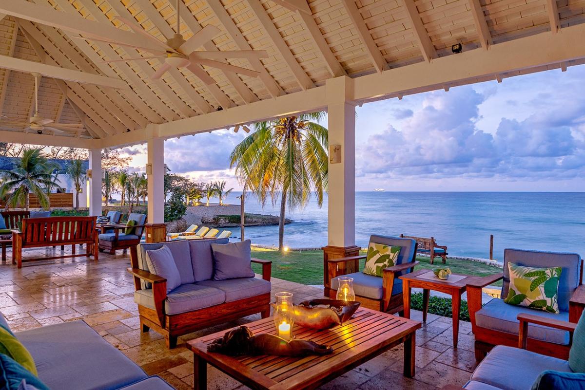 A sprawling double lot directly on the Caribbean Sea is among the most stunning waterfront locations in all Jamaica. This is the rarefied site of the private villa named Karma Bay. Six bedrooms, multiple gazebos and sitting areas, and a beautiful pool with a broad marble terrace are bordered by a wide soft lawn, coconut palms and a blue view that stretches to infinity. The vista is so expansive that it captures both the sunrise and sunset skies.