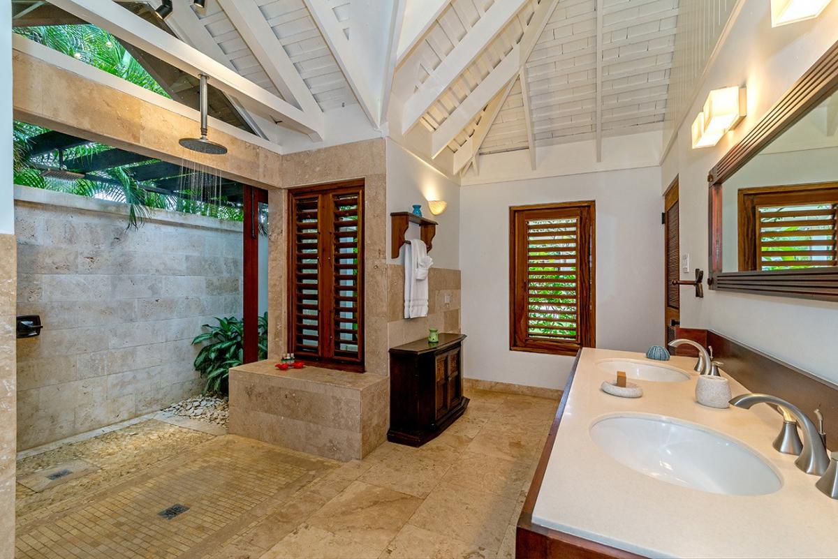 Complementing this dramatic site is the architecturally unique and glamorous villa itself. Its features are distinctly Caribbean; its interiors are rich in Jamaican, Asian and European influences in an esoteric merging of period, contemporary and traditional style. With consideration for vacationers in groups of up to 12 guests, Karma Bay's design provides many private areas for hours of solitude whenever individuals wish to escape from their beloved families and best friends.