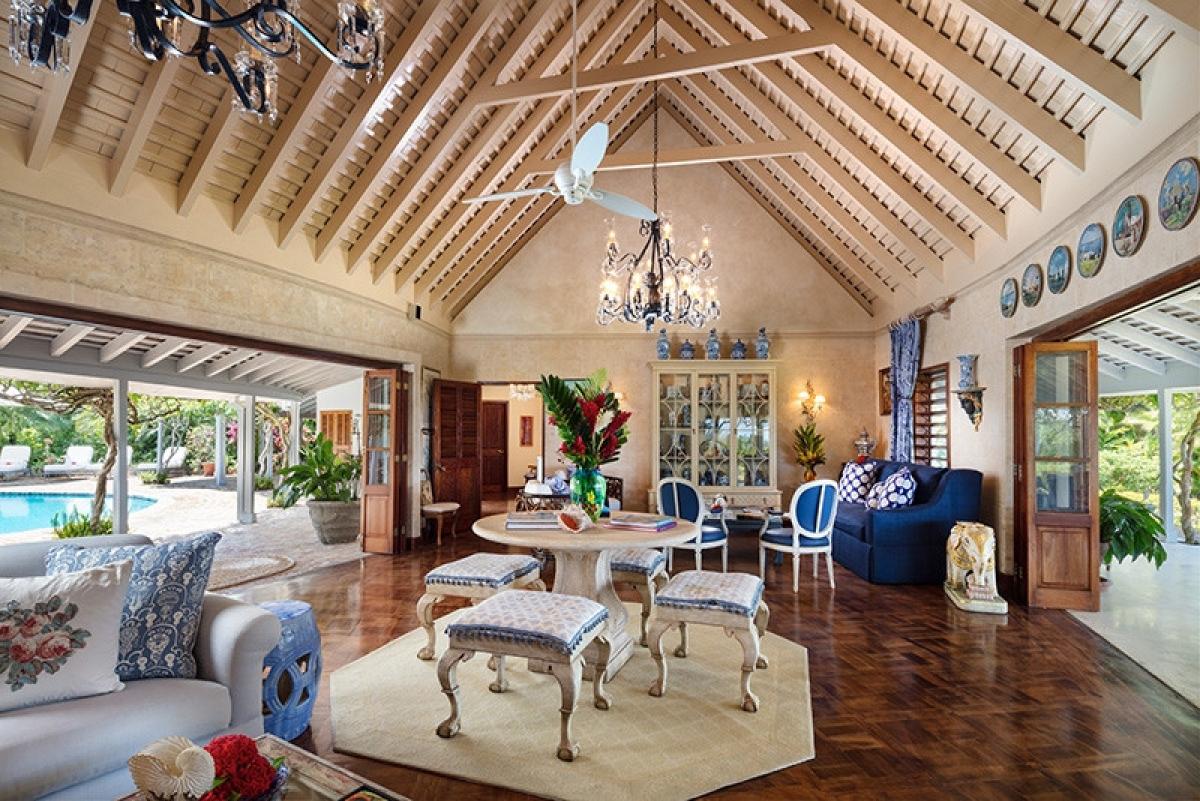 The house is superbly sited on its own hill of five and three quarter acres and set in beautiful landscaped grounds. Little Hill commands a 360 degree view of the surrounding area from an elevation of 200 feet. There are views of the Caribbean Sea, the forest and the club’s internationally acclaimed 18-hole championship golf course. There is a hard tennis court on the western side of the property with a covered area for spectators.