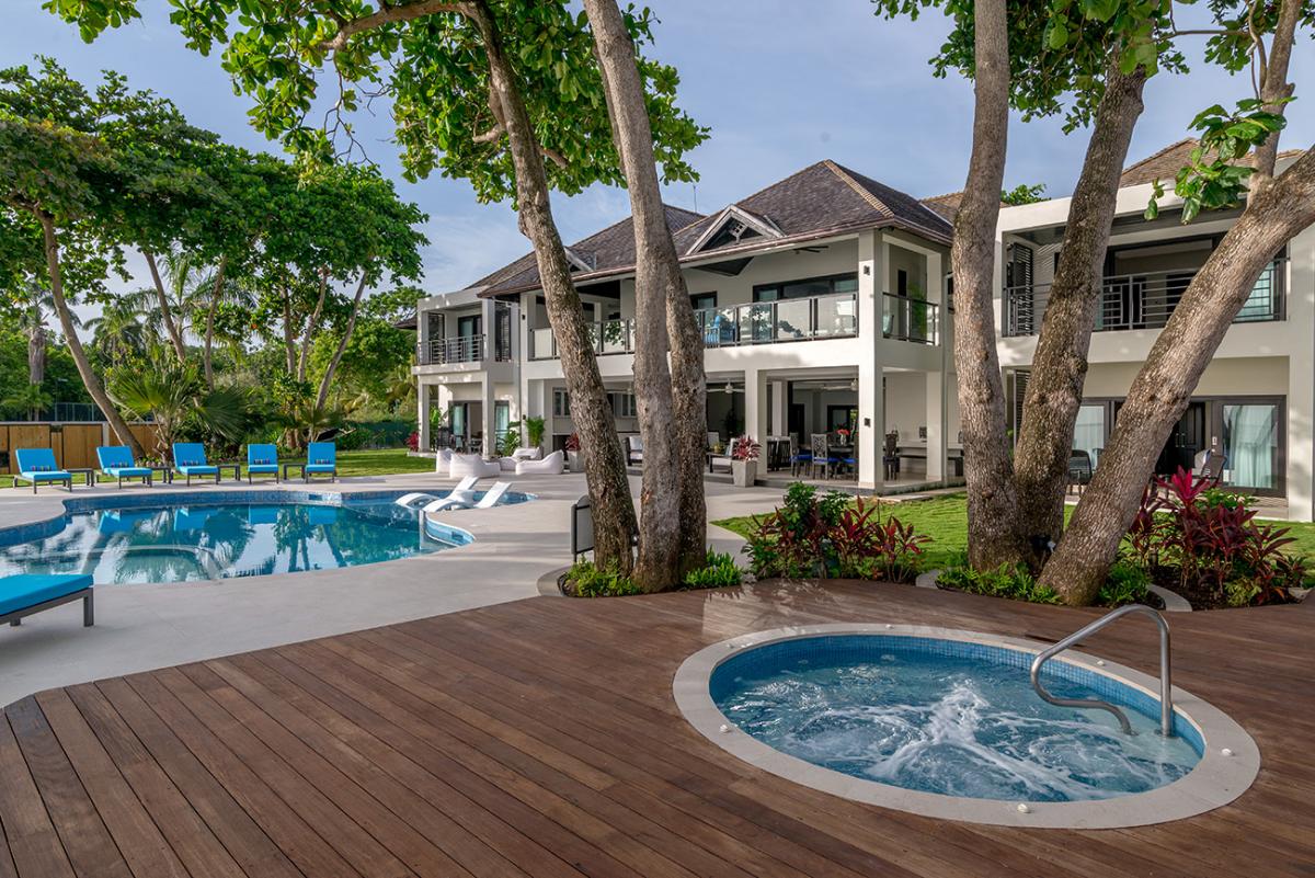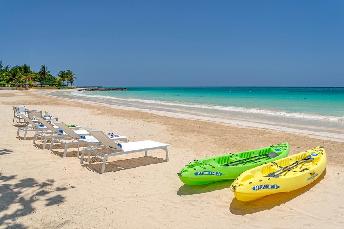 Directly on the turquoise waters of Old Fort Bay in St. Anns Parish, Malatai is one of the newest and largest villas in this collection. The free-form pool includes a shallow childrens section, separated from the deeper pool by an underwater partition. The overall property consists of the spacious main villa, separate air-conditioned fitness cottage, hot tub, large lawn with shaded sitting areas, and teak party deck with barbeque for outdoor entertaining by the sea. Beyond the lawn is the lovely white beach and excellent swimming water. Four single and four double kayaks are complimentary. Life vests are also provided for both adults and children.