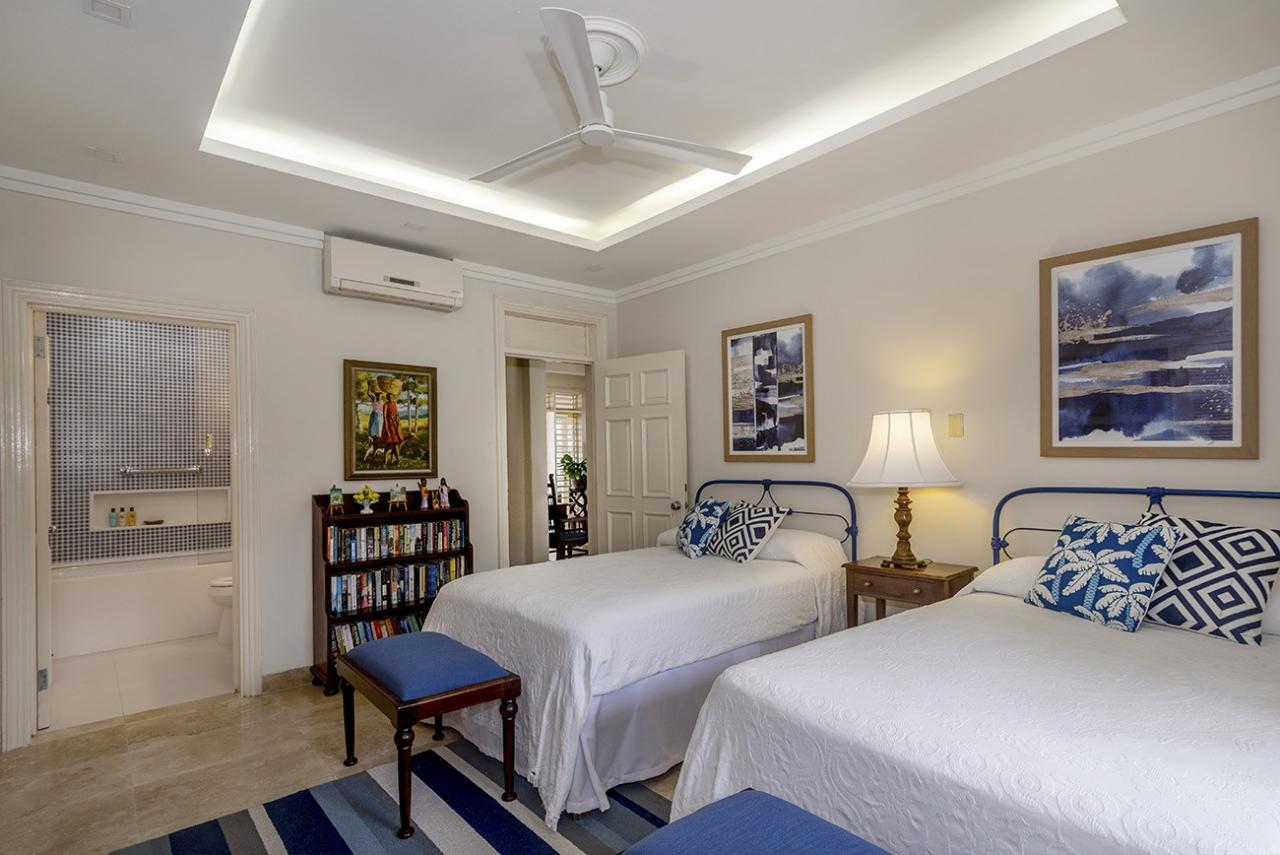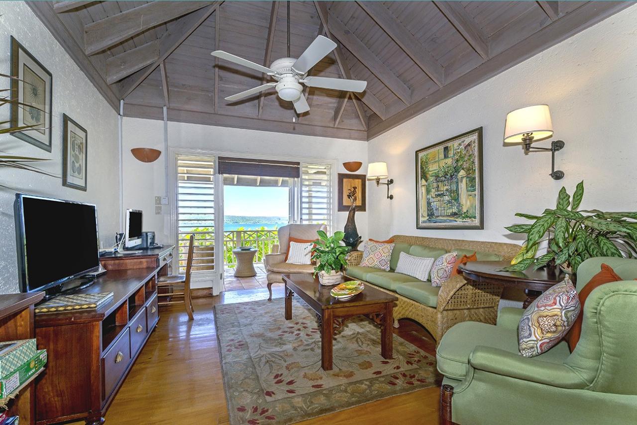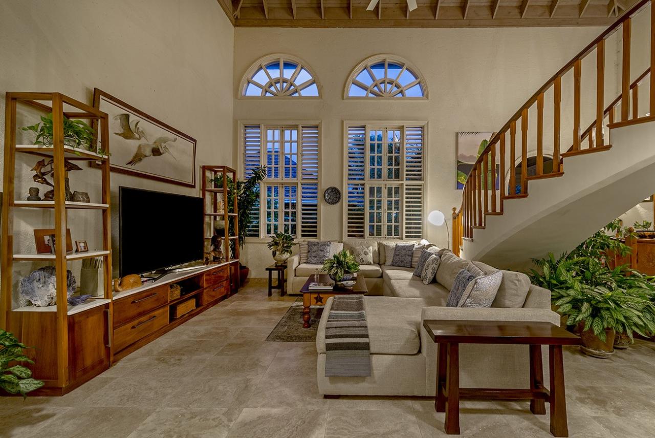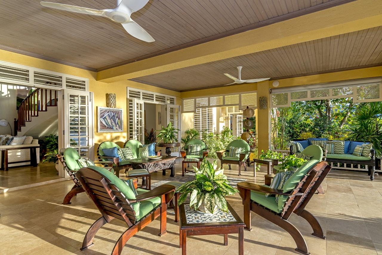 On its own sugary white sand beach lapped by the turquoise waters of Discovery Bay sits the exquisite home Sugar Bay. Interiors are distinguished by elegant custom-designed furniture, color-washed walls, gleaming breadnut floors, and fascinating objets d`art from around the world.