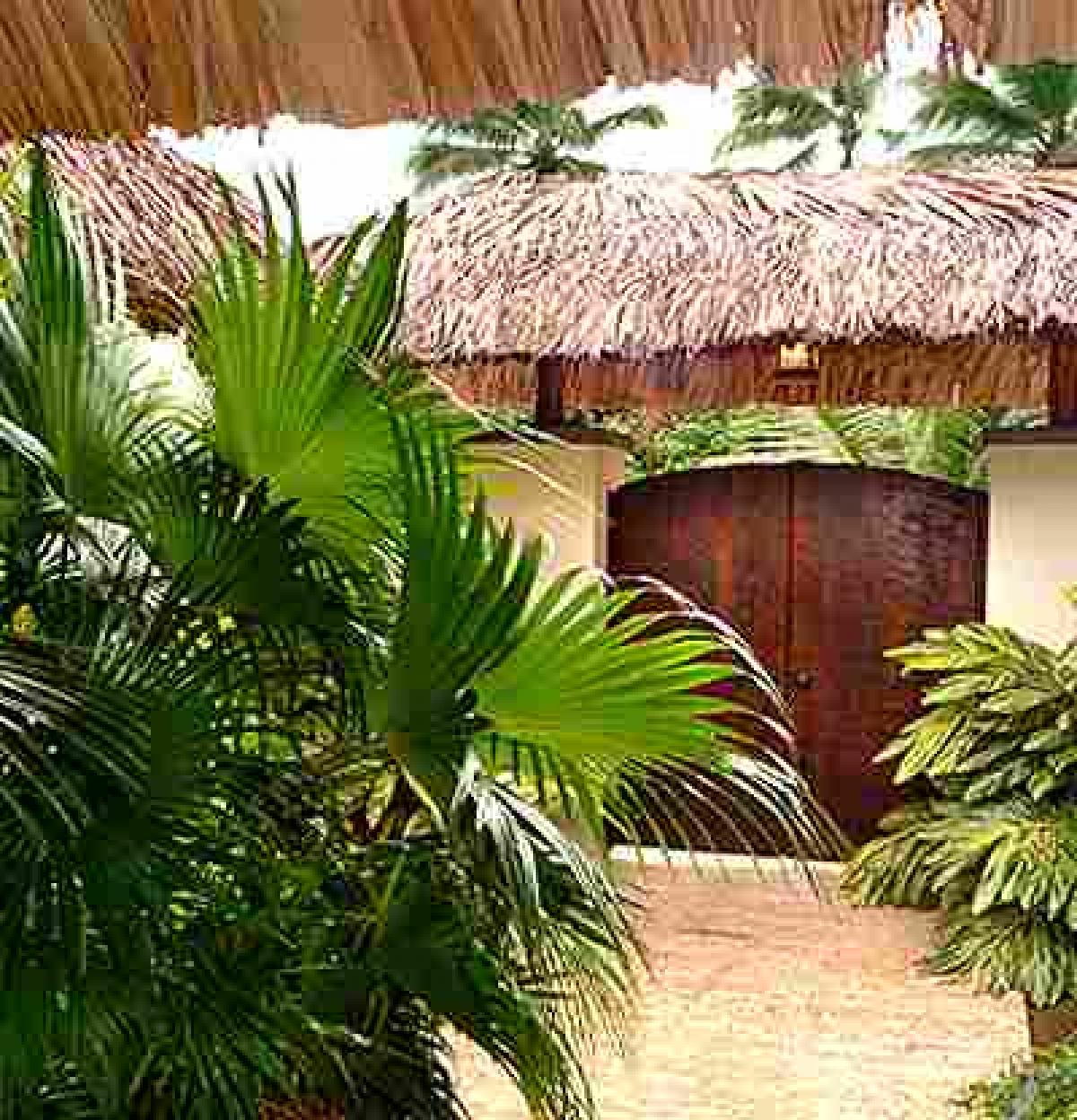 Entirely hand crafted, Villa 5 features Italian tile floors throughout, marble bathrooms, and hand woven roofs with hand carved timbers. It is fully air-conditioned, just steps away from Nevis' extraordinary beachfront. The hand hewn doors of the perimeter walls open onto a private courtyard and the double doored entry to the villa. With soaring hand woven roofs and views to the Caribbean Sea, you will thoroughly enjoy the breathtaking beauty of this villa.