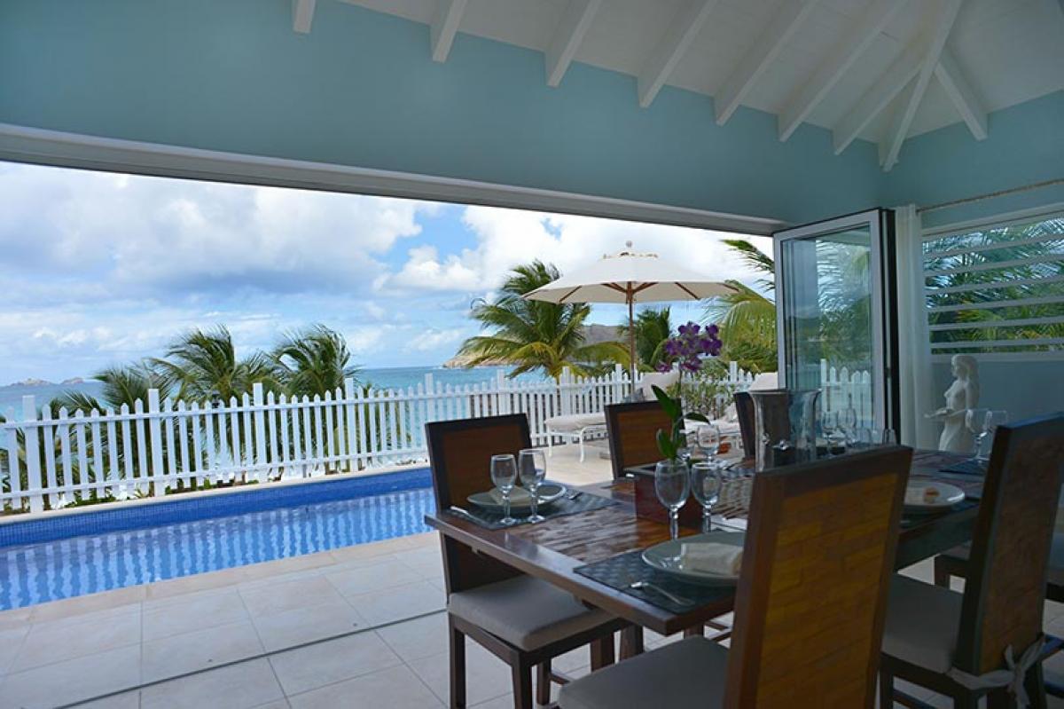 Celina is a beautiful two bedroom, beachfront villa with an open floor plan and gorgeous views of Flamands Beach. The private pool overlooks the ocean, the lush tropical landscaping and the coconut trees beautifully swaying in the breeze. Truly a peaceful and relaxing outdoor setting.