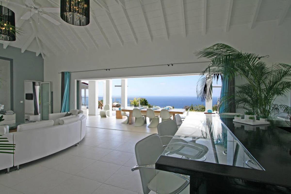 Villa Azur is a gorgeous 3 bedroom, 3 bathroom property with some of the most amazing views. You will be stunned by the beautiful ocean vistas and all the islands you will see from the sundeck of this vacation home. The interior is a contemporary design with a luxurious white leather sofa in the living area, gourmet kitchen and bar. There is modern decor throughout the rest of the home. The outside is equally stunning with the infinity edge pool, sundeck and al fresco covered dining area. This vacation home is ideal for families or couples traveling together. Villa Azur has everything you need for your next holiday getaway. It is just minutes away from the restaurants and shopping in Gustavia. It is also very close to the beautiful Gouverneur Beach.