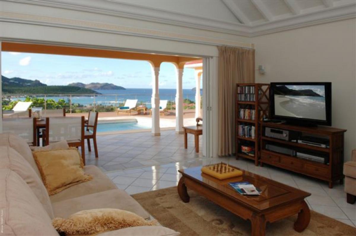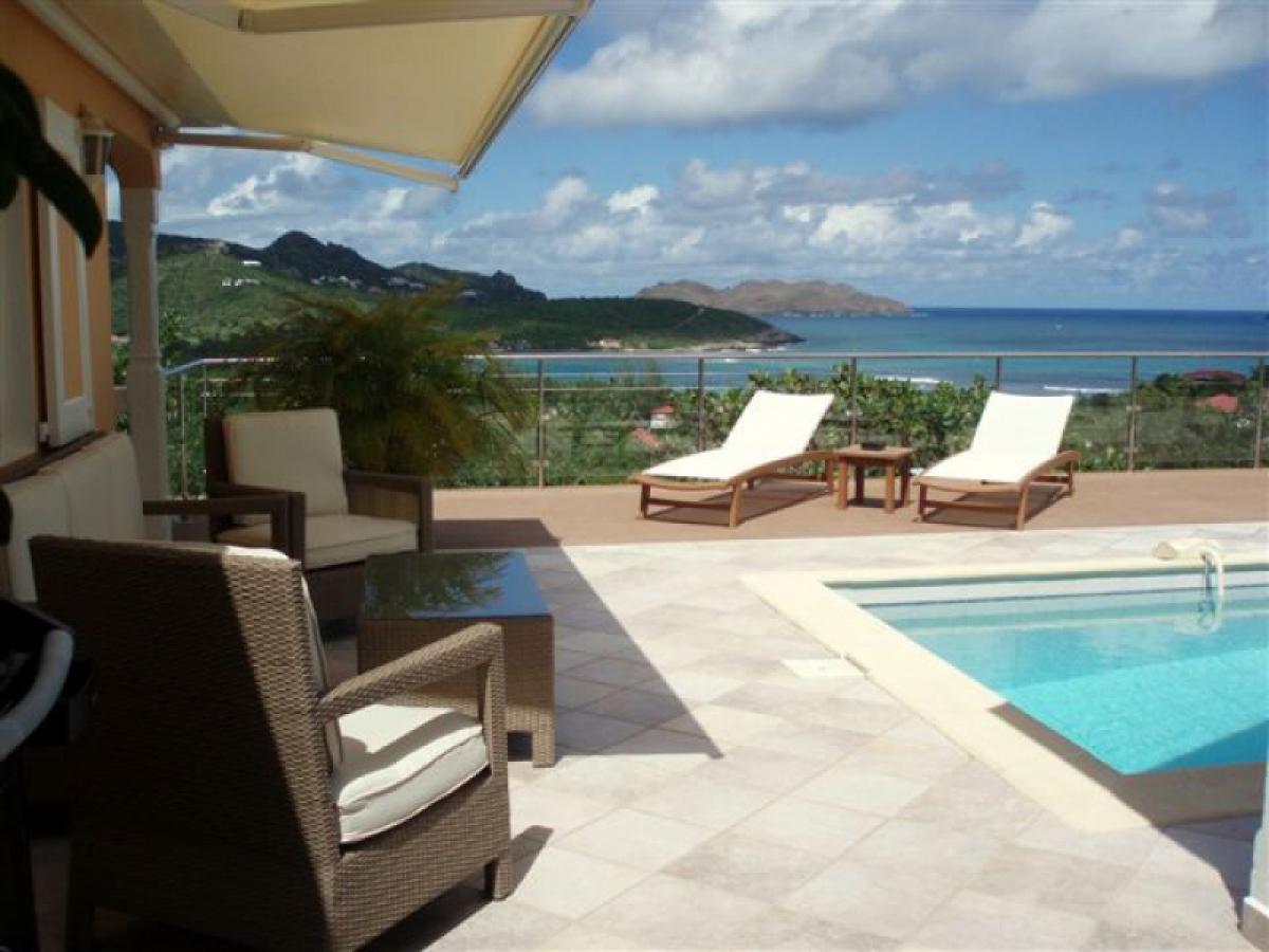 Villa Les Acajous is a true little paradise of coziness and tranquility. Sunkissed and brushed by the gentle breeze of the trade winds, its terrace is a great place for sunbathing and relaxation. Enjoy the swimming pool overlooking the bay and relax at your convenience in the lounge. Villa Les Acajous is very comfortable with rattan furniture, spacious living room, and sliding doors opening onto the front and side terraces with panoramic views around the beautiful pool and sunny deck. It is a short drive to either beach, Salines or St. Jean, and conveniently close to the restaurants and shops of Gustavia.