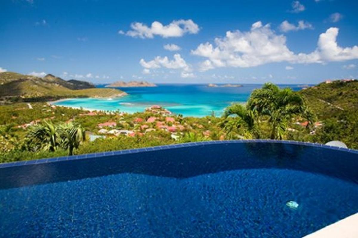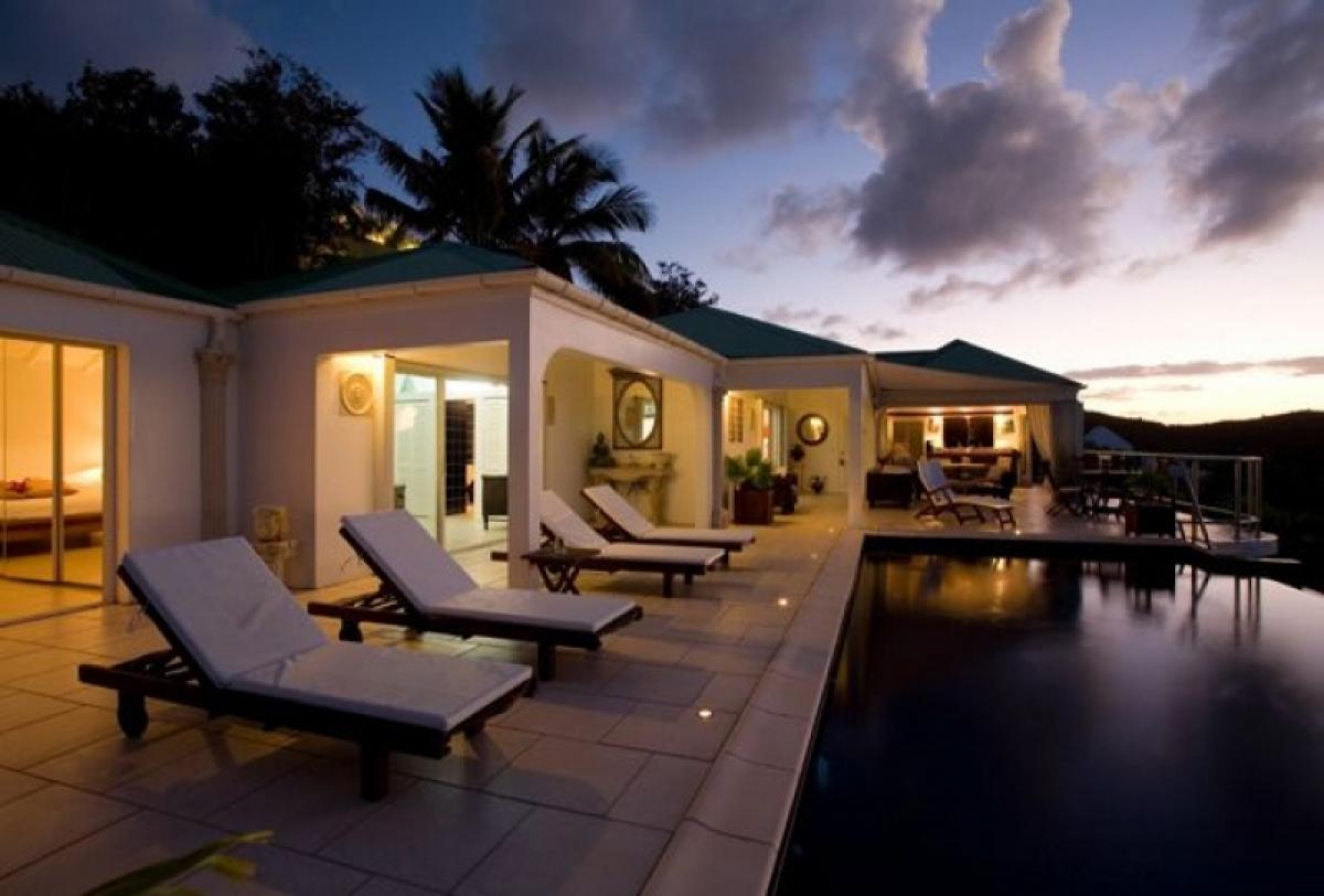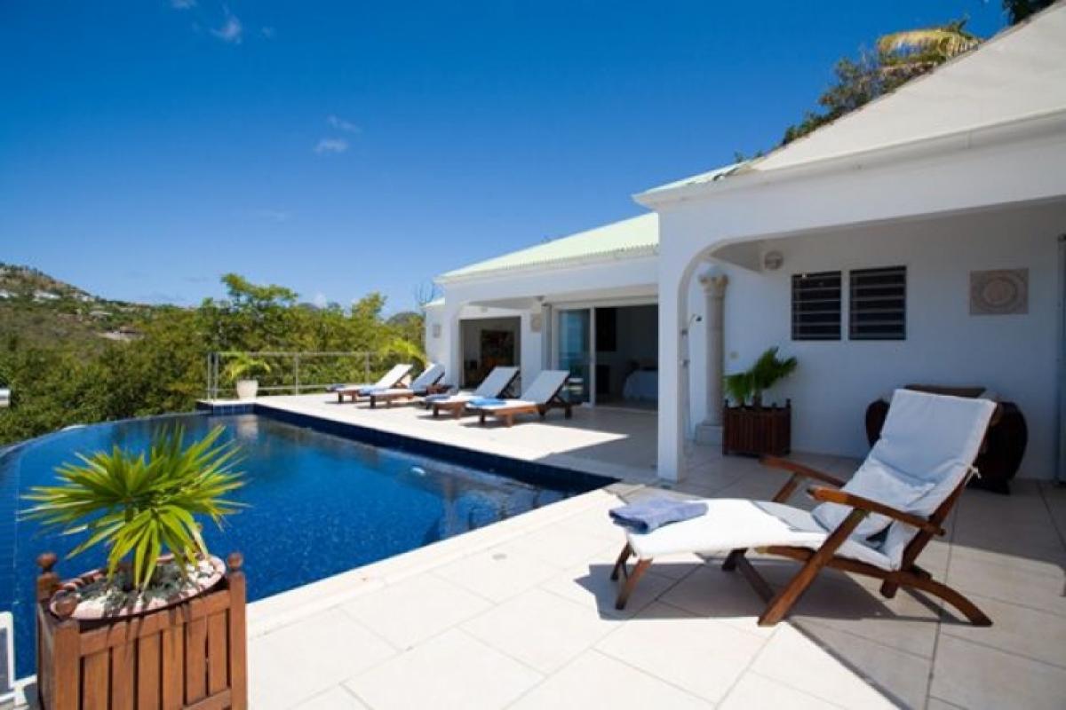 Villa Mystique has breathtaking views over the bay of St Jean. The villa has five spacious bedrooms, each with a private bathroom. The beach is only a five minute walk. There is a large terrace with a sitting area and a nice semi-outdoor lounge. The garden is tropical and several birds visit you for breakfast in the morning. The navy blue infinity pool melts in the decor. Have a larger group? Villa Sunrise can also be rented for a total of 9 bedrooms.