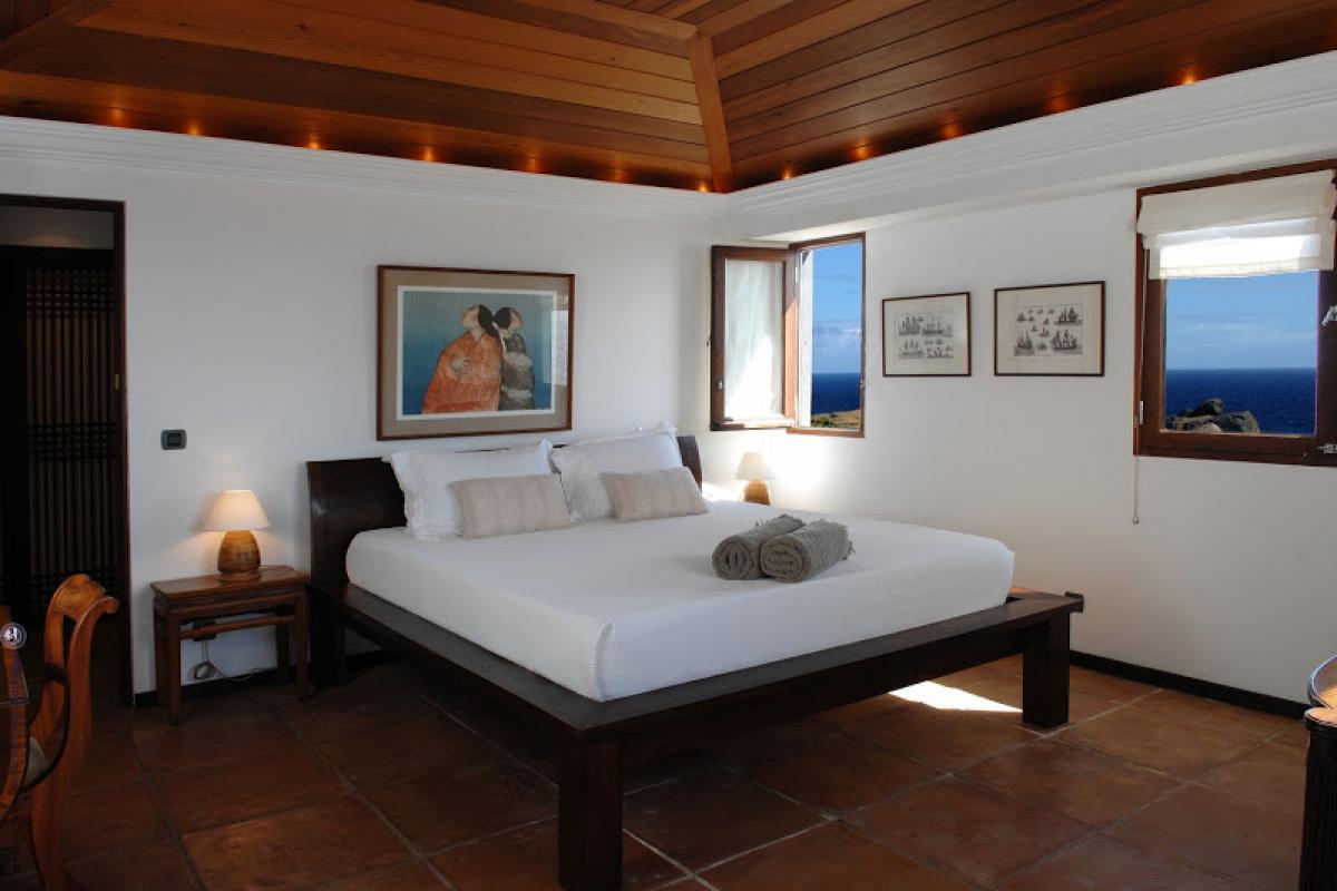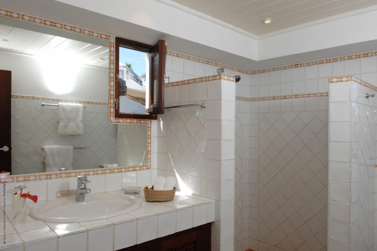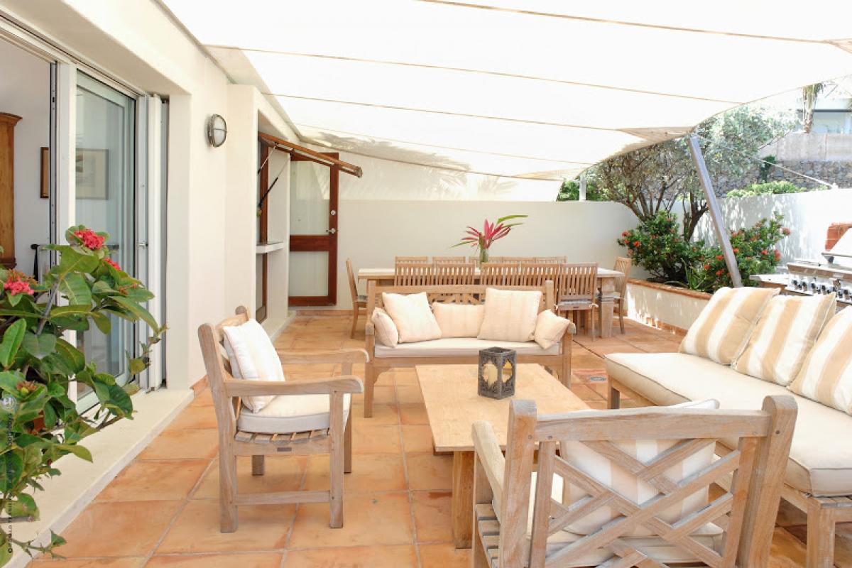 Villa Samar is a beautiful 5 bedroom, 5.5 bathroom cliffside property that offers magnificent ocean views. Set high above Petit Cul de Sac and in a gated community, this villa has all the privacy you are looking for. The Italian influence can be seen in the design and decor of the home. There is a nice size living area, a well equipped kitchen, and the outdoor living areas offer al fresco dining and a private pool. Relax outside on one of the terraces. There is plenty of sun and shade depending on your preference. The patio has a wood fired pizza oven for you to enjoy. Villa Samar is beautifully landscaped. You will enjoy taking in the views of both the ocean and the gardens.