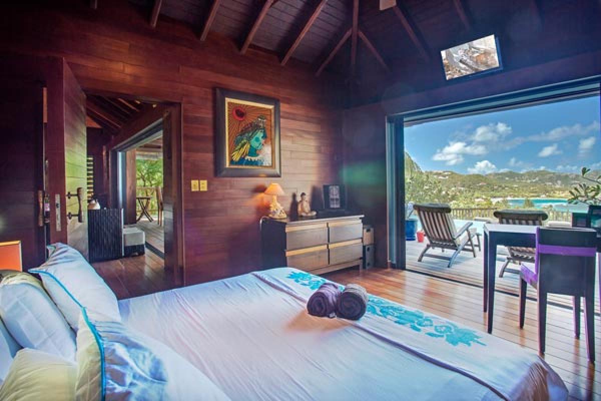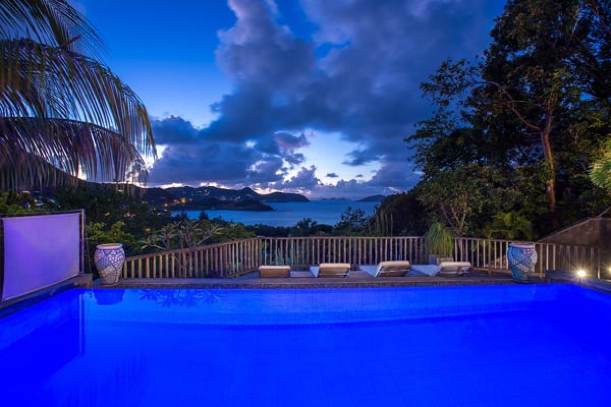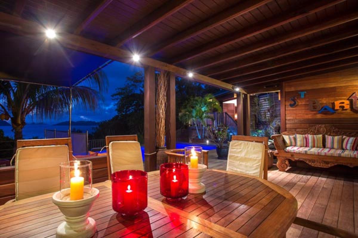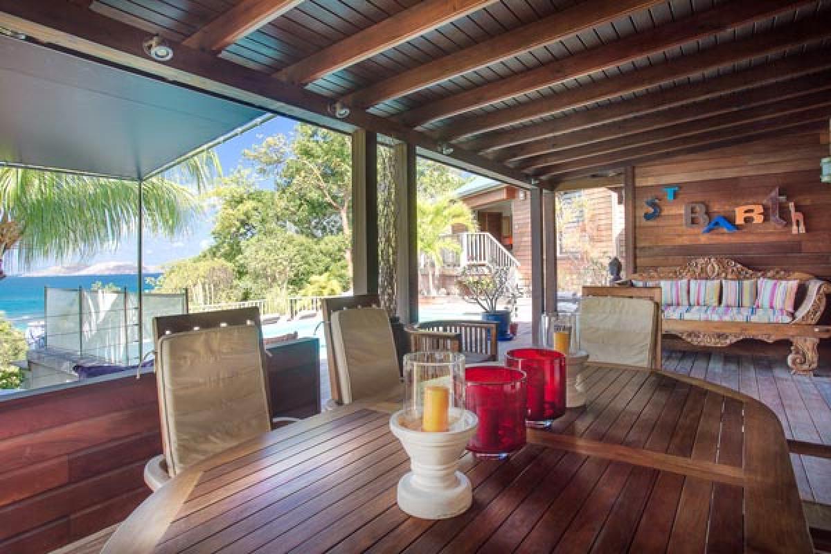 From a quiet road, through an electric gate to a private parking area, the gate closes and you have arrived at Villa Veronika. On the hillside of Camaruche, this lovely St Barts villa rental offers a fantastic view over Lorient Bay while enjoying breathtaking sunsets year round. Decor & furnishings in a refined Balinese style, the antique furniture, art and accessories were collected from the various trips of the owners and has the exotic feeling of an Asian house.