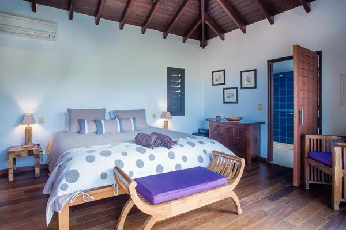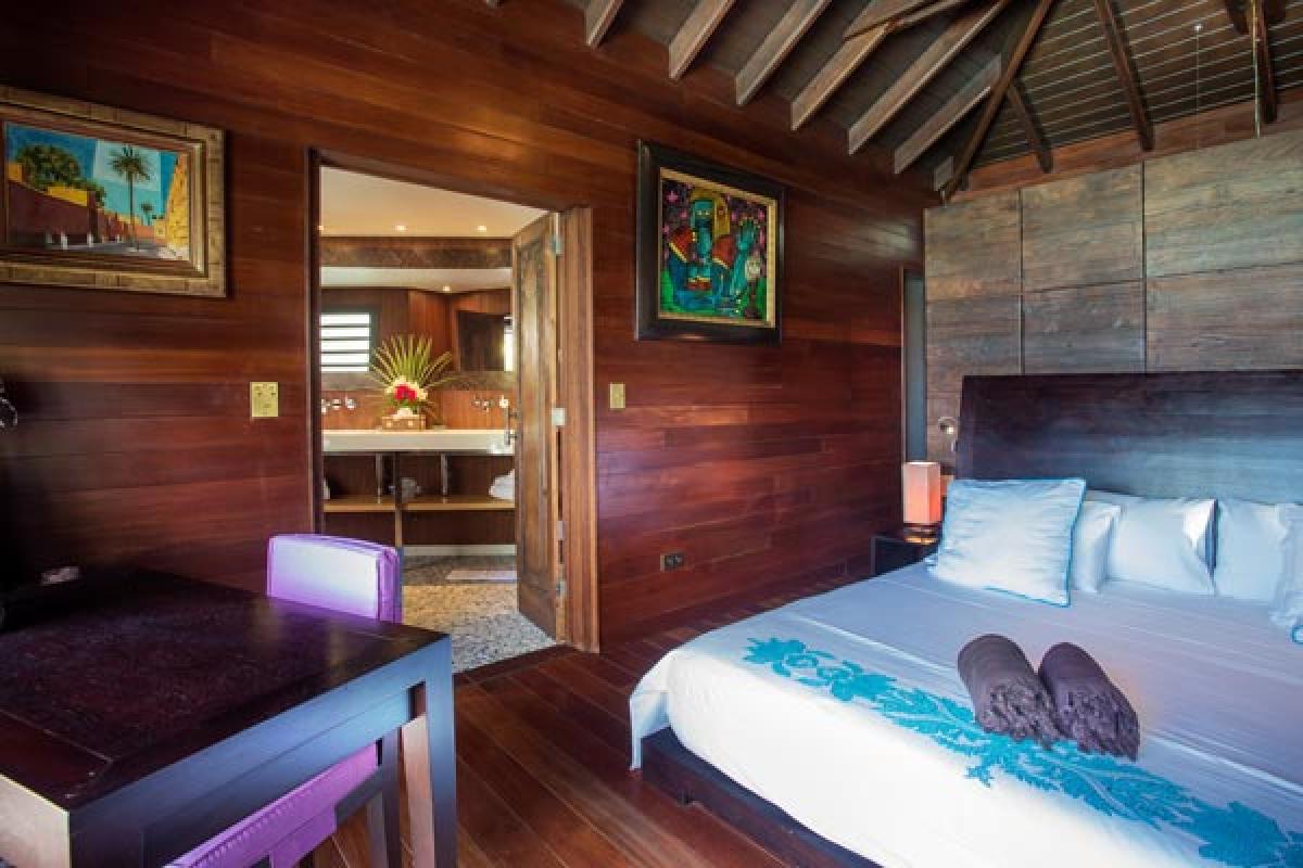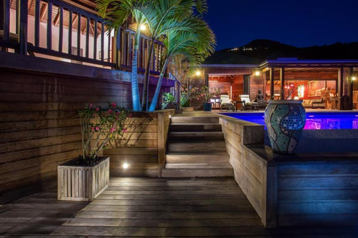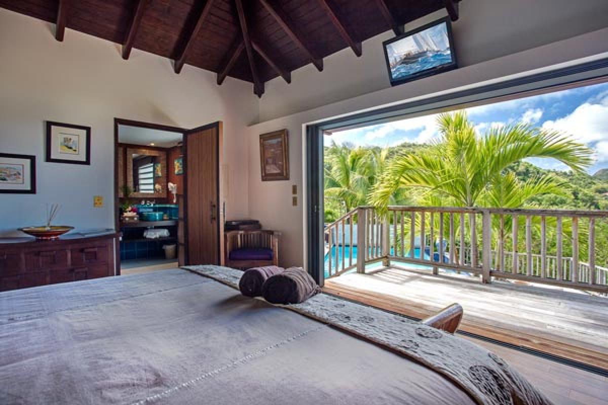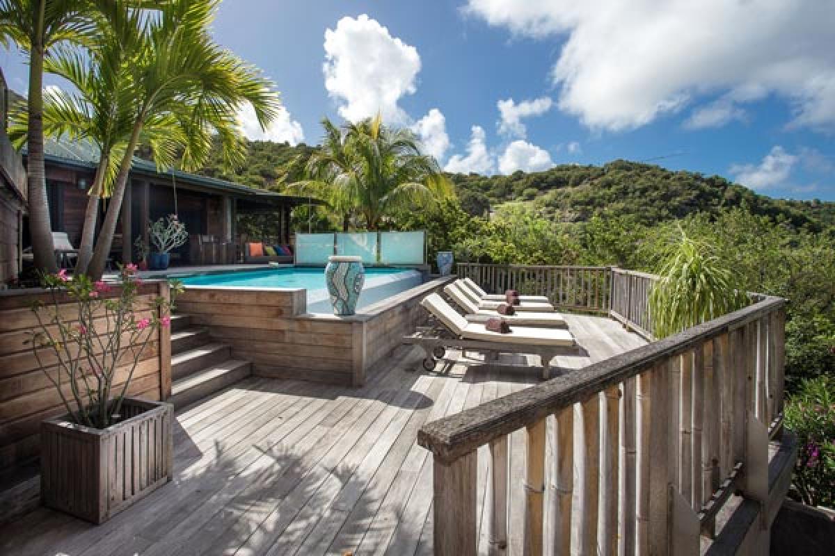 From a quiet road, through an electric gate to a private parking area, the gate closes and you have arrived at Villa Veronika. On the hillside of Camaruche, this lovely St Barts villa rental offers a fantastic view over Lorient Bay while enjoying breathtaking sunsets year round. Decor & furnishings in a refined Balinese style, the antique furniture, art and accessories were collected from the various trips of the owners and has the exotic feeling of an Asian house.