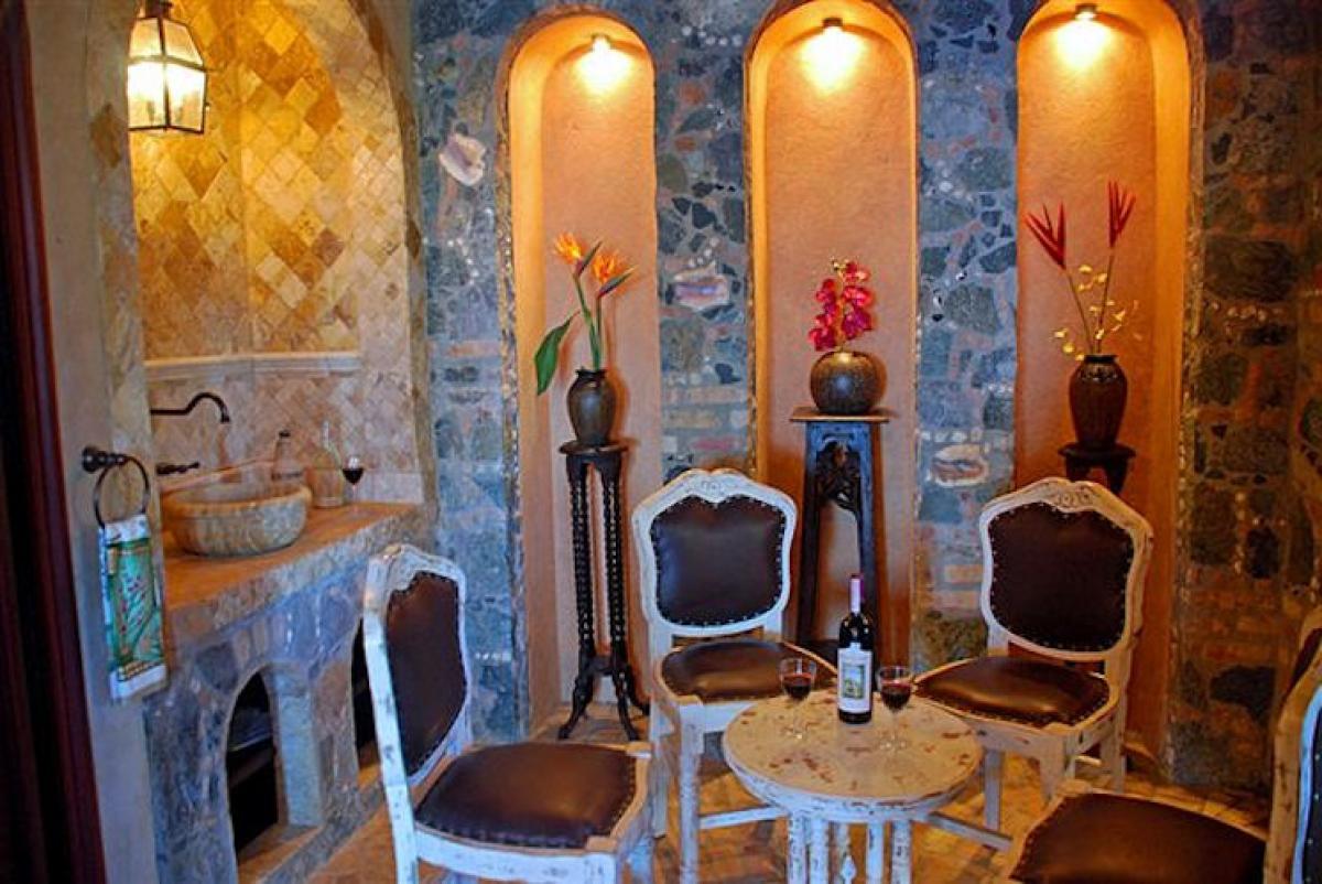 Amorosa is the perfect, luxury St. John vacation rental. This lovely 8,000 square foot villa is located close to Peter Bay and is surrounded by St. John's National Park found on the islands most desirable location. The fabulous north shore beaches at Peter Bay, Trunk Bay, Cinnamon Bay, Maho Bay, Francis Bay, Hawksnest, and more, are only a few moments drive in either direction. In fact, your own Peter Bay beach can be walked to from Amorosa in a lovely 5-10 minute stroll. Views from the villa in St. John stretch from Cinnamon Bay, out to Jost Van Dyke and the BVI, and out to Francis Bay and Tortola. The design of Amorosa captures the old world splendor of a great Italian villa dating back hundreds of years. At the same time, all the modern conveniences blend. The 14' waterfall between two ponds sits beneath the upper terrace spa and surrounds the 8 person outdoor bar and barbecue. The vanishing edge pool is surrounded by sun terrace and verandah. Indoor features begin with a charming marble and stone wine tasting room, but be sure to view some photos of the many amenities.